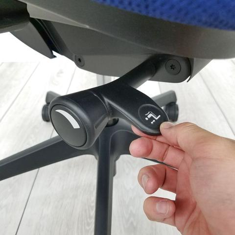 - 座面右下のダイヤル操作で、リクライニングの強弱調整が行えます。これまでのダイヤル式よりも、少ない回転数で、最弱?最強の調整が可能です。