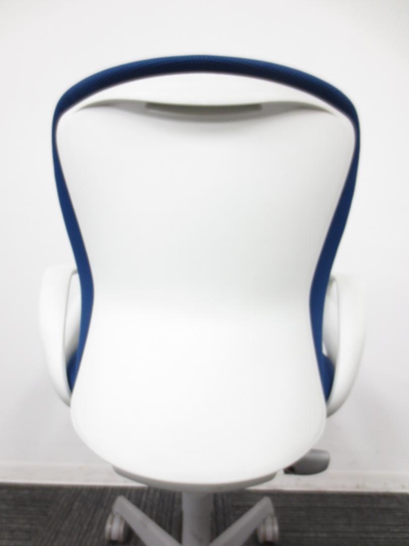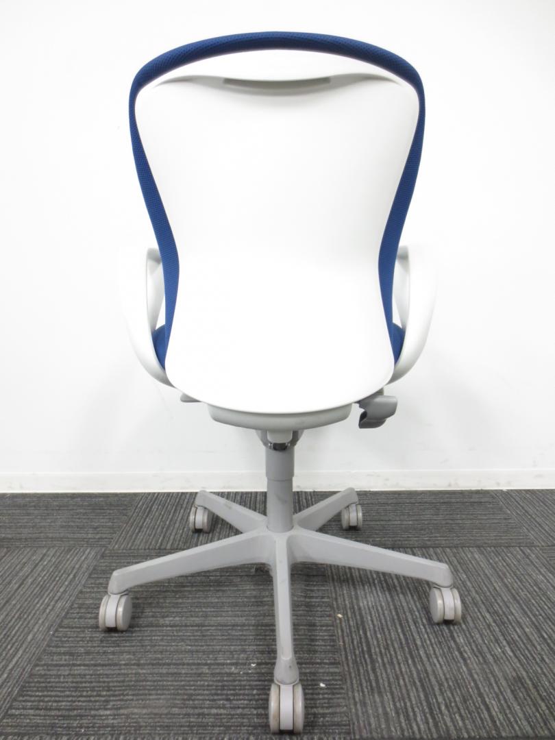 【1脚限定】【クレジット決済優先】【破れあり】 オカムラ製 スラートチェア ブルー×ホワイトシェル 爽やかな見た目! ローバック肘無 新大阪店- 新大阪店