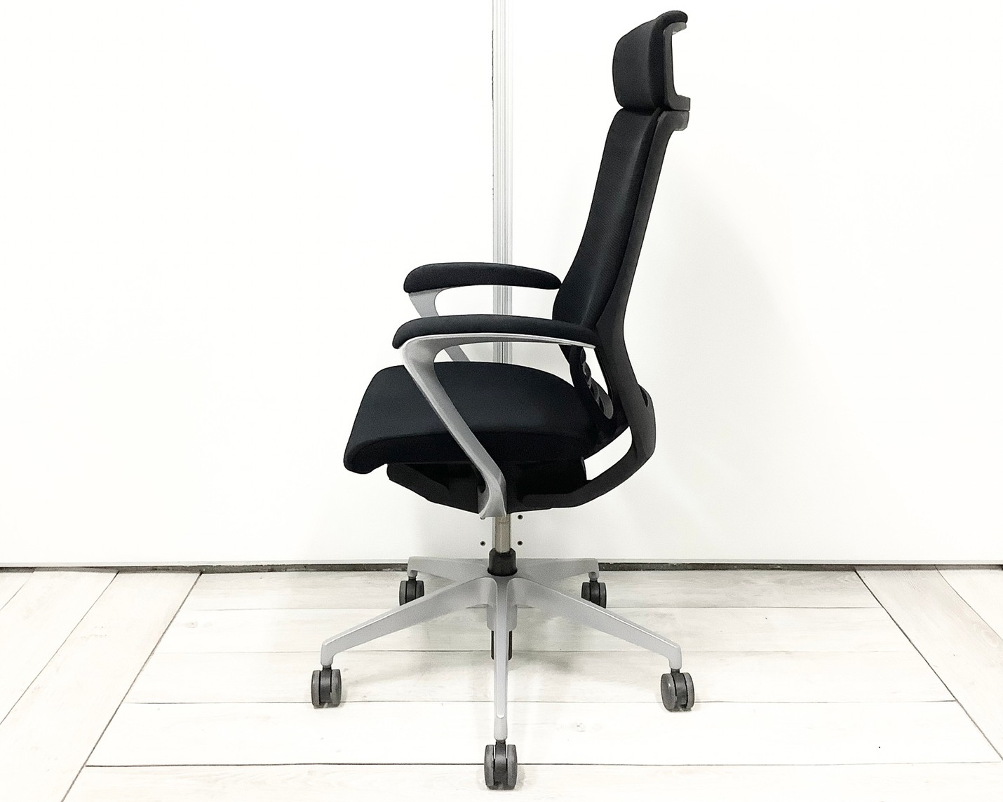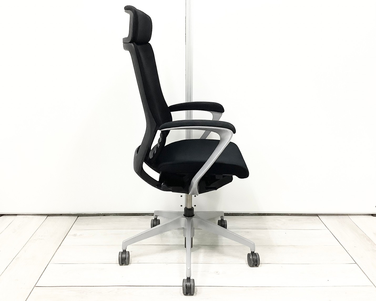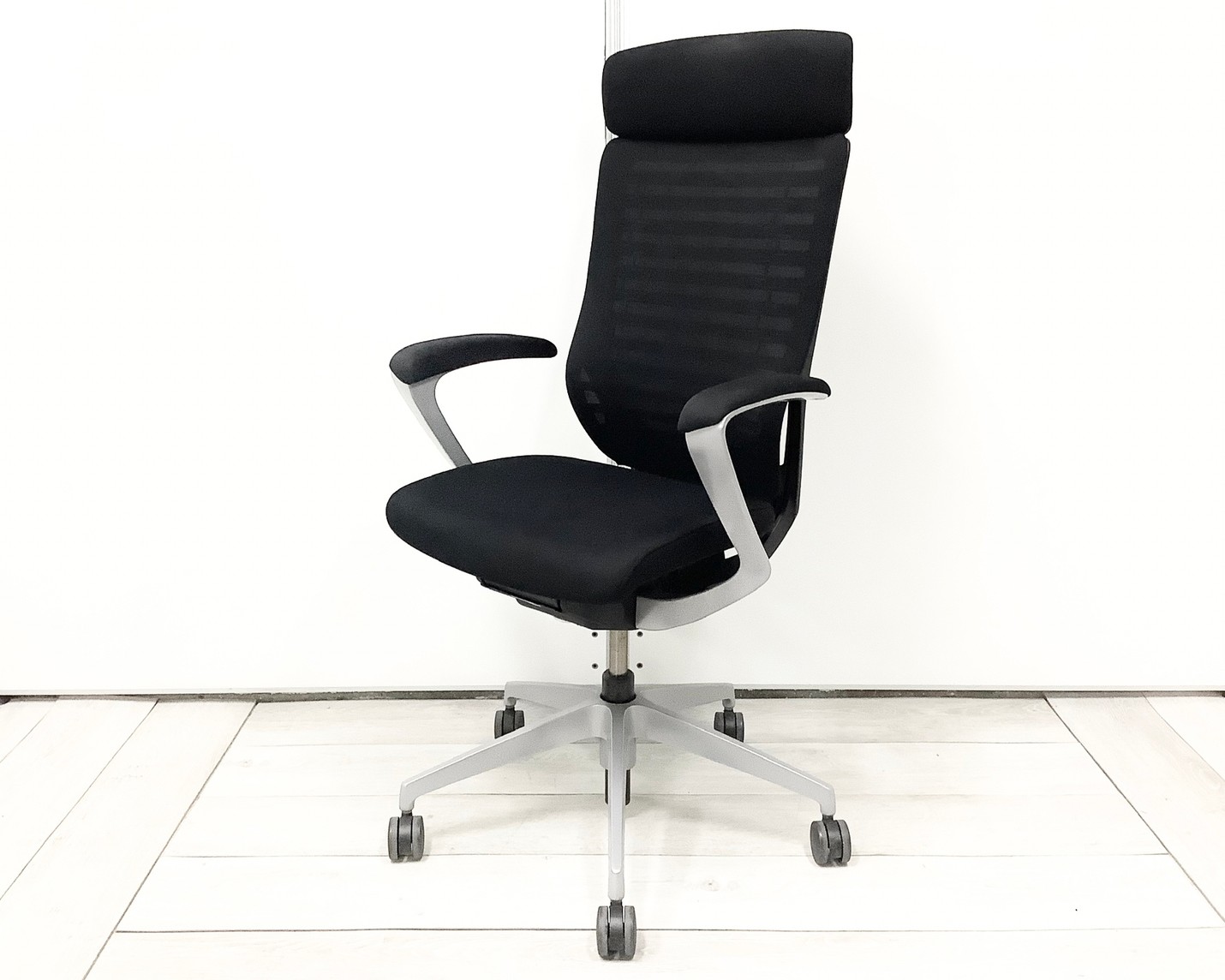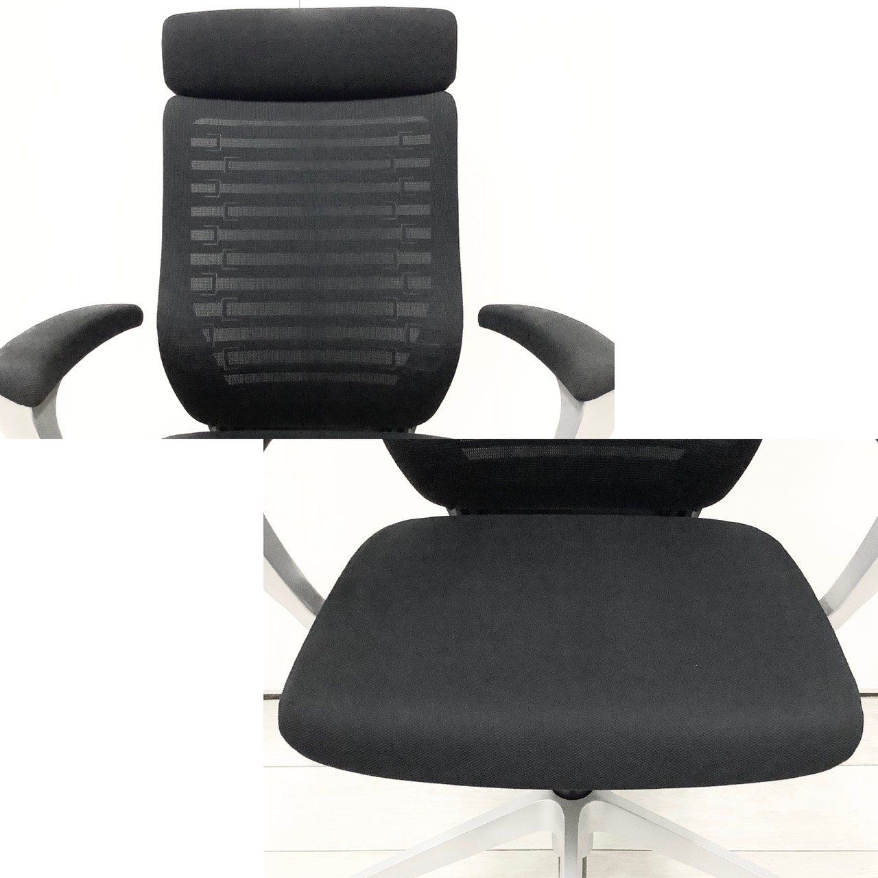 【ヘッドレスト付き!】【1脚限定の為、クレジット決済優先】【姿勢の変化をサポート!操作レスで体格にマッチする定番チェア】■イトーキ(ITOKI)製 エピオスチェア(epios) 肘付き エクストラハイバック 背面メッシュ ■固定肘・ヘッドレスト付 ■ブラック