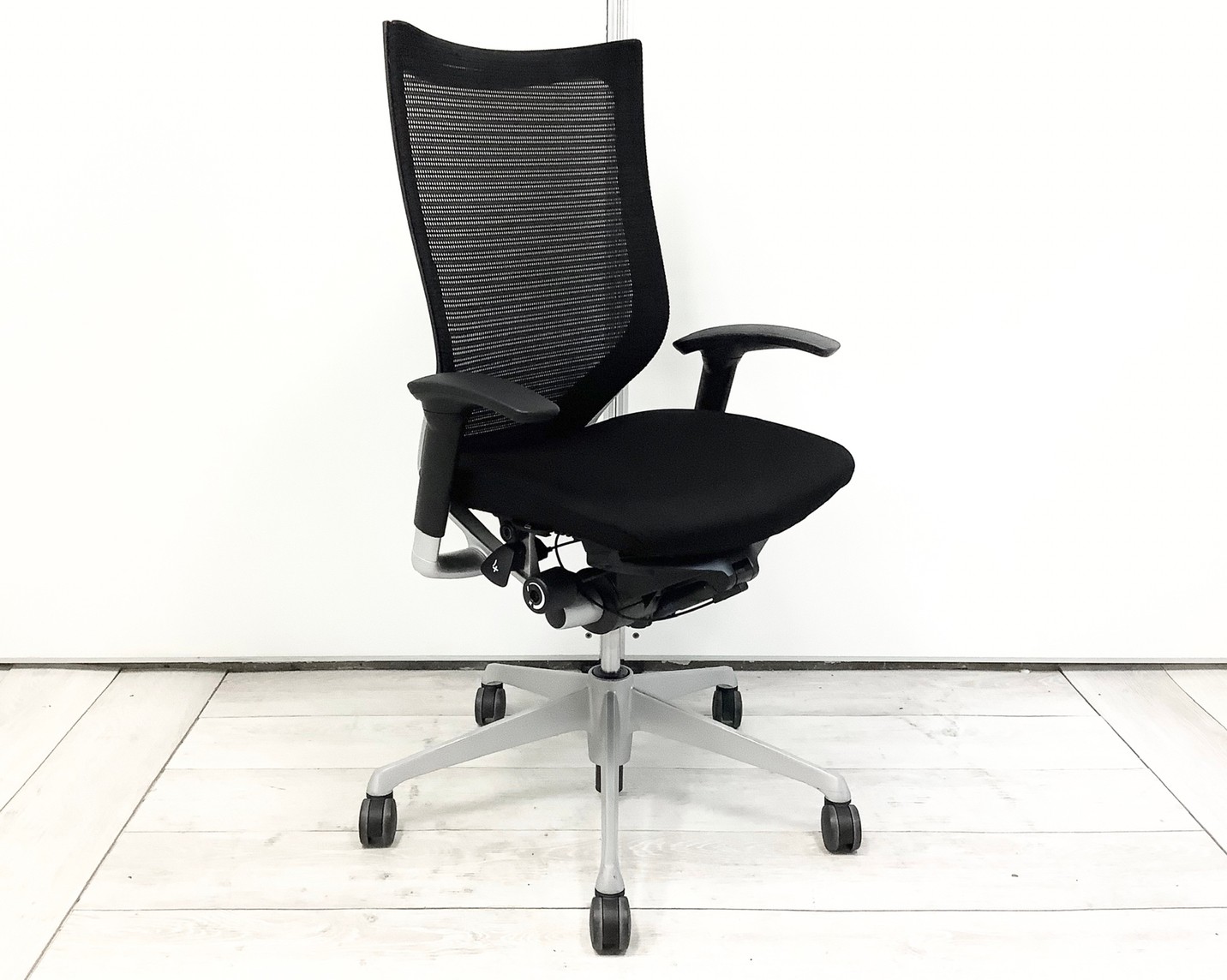 【長時間の着座でも疲れにくい!ベストなポジションが得られる先進設計!】■オカムラ バロンチェア 肘付 ブラック ハイバック シルバーフレーム ■良い椅子は腰を守る投資です!【Okamura Baron】