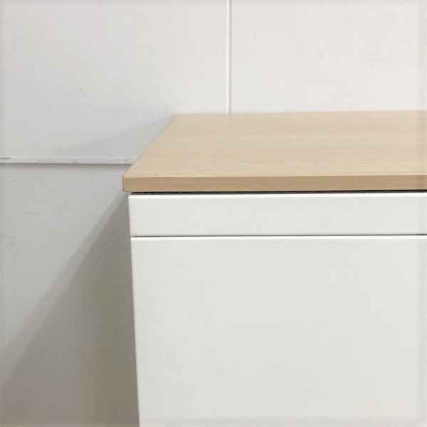 明るい木目の天板付きで見た目もよし〇