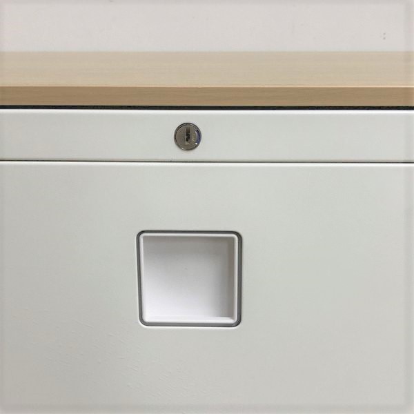 オカムラ レクトライン 3段ラテラル書庫 ホワイト天板 シリンダー錠 鍵付き ※取っ手部分に若干日焼けあり