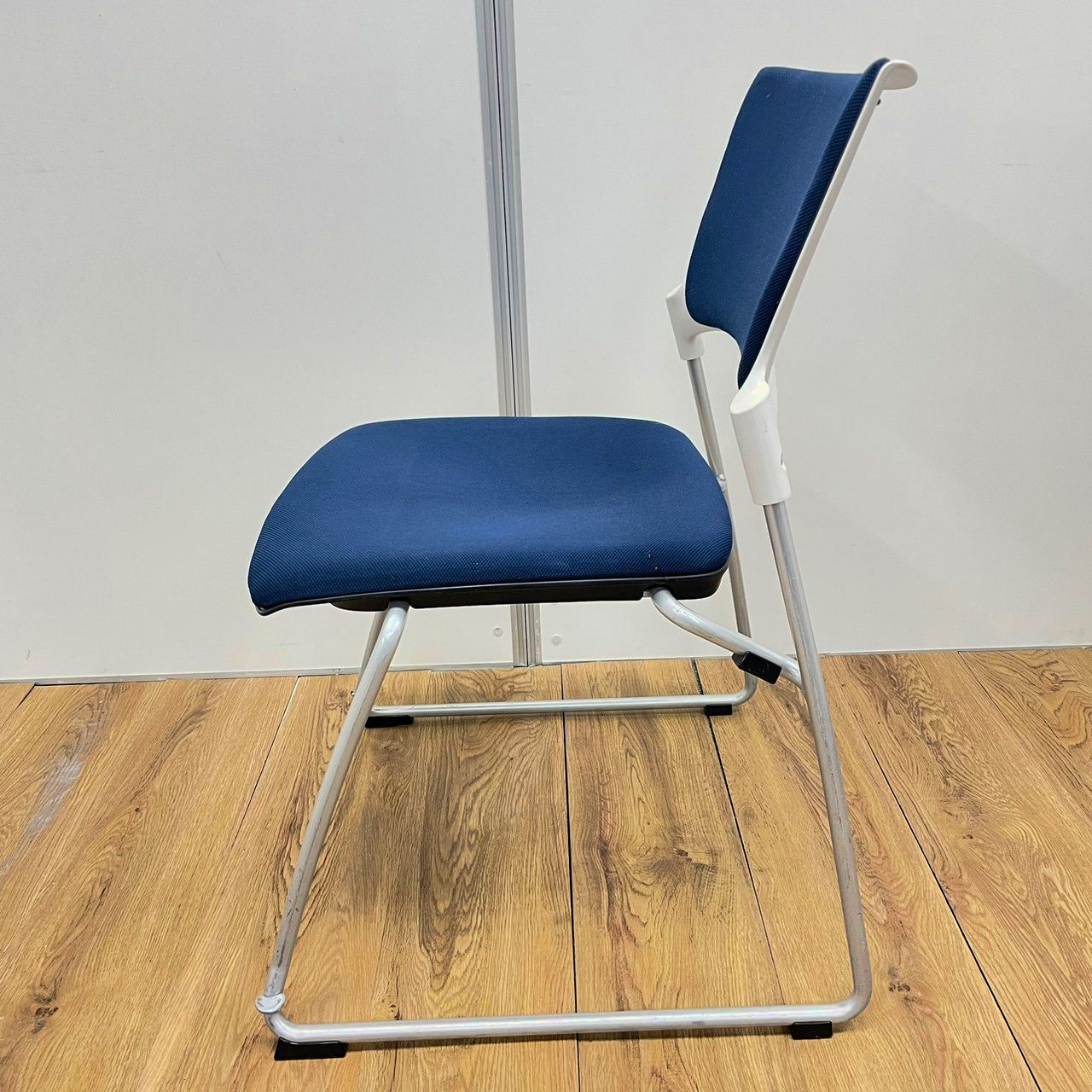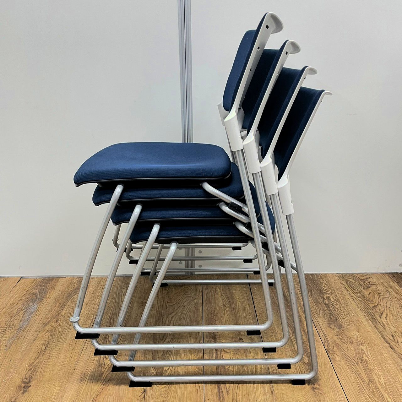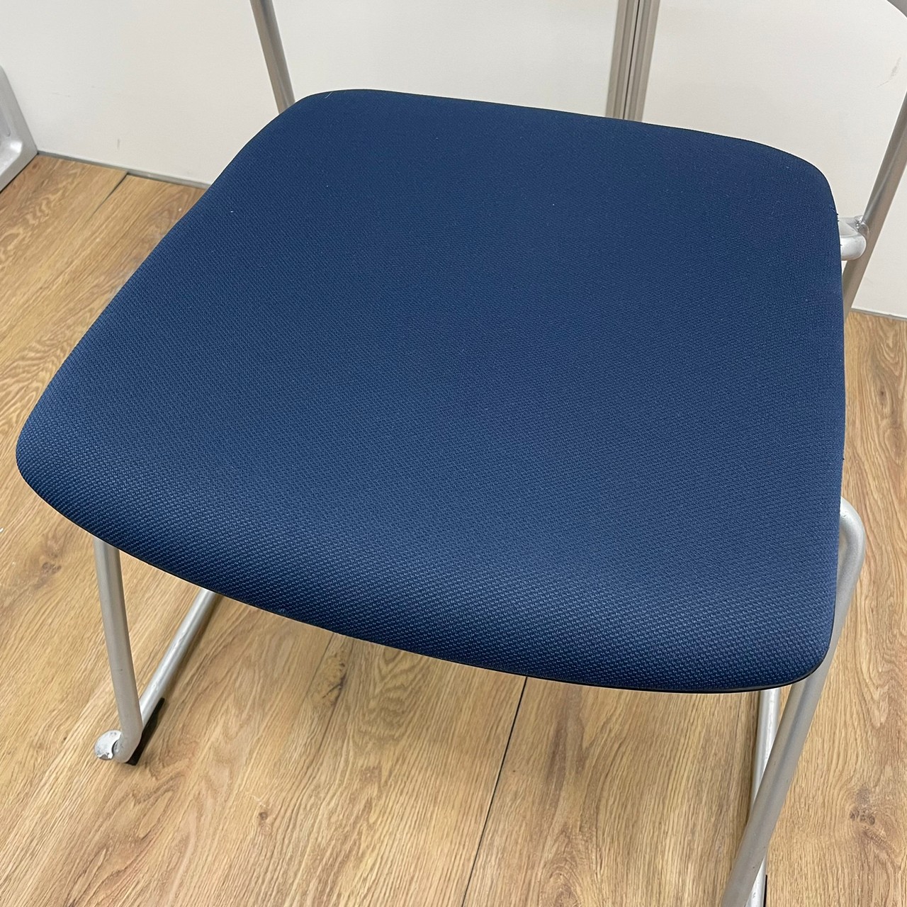 【座面側面に小さな破れあり】【4脚セット】イトーキ製 マノスシリーズ ブルー スタッキングチェア!!- 京都東寺店