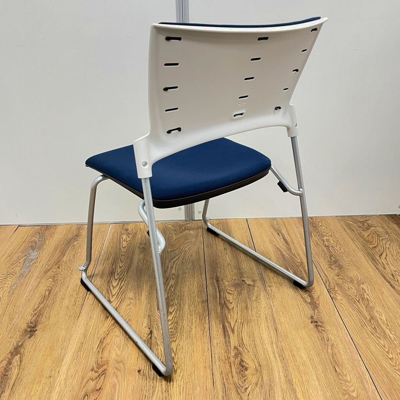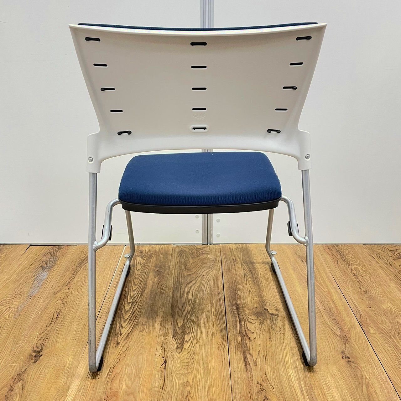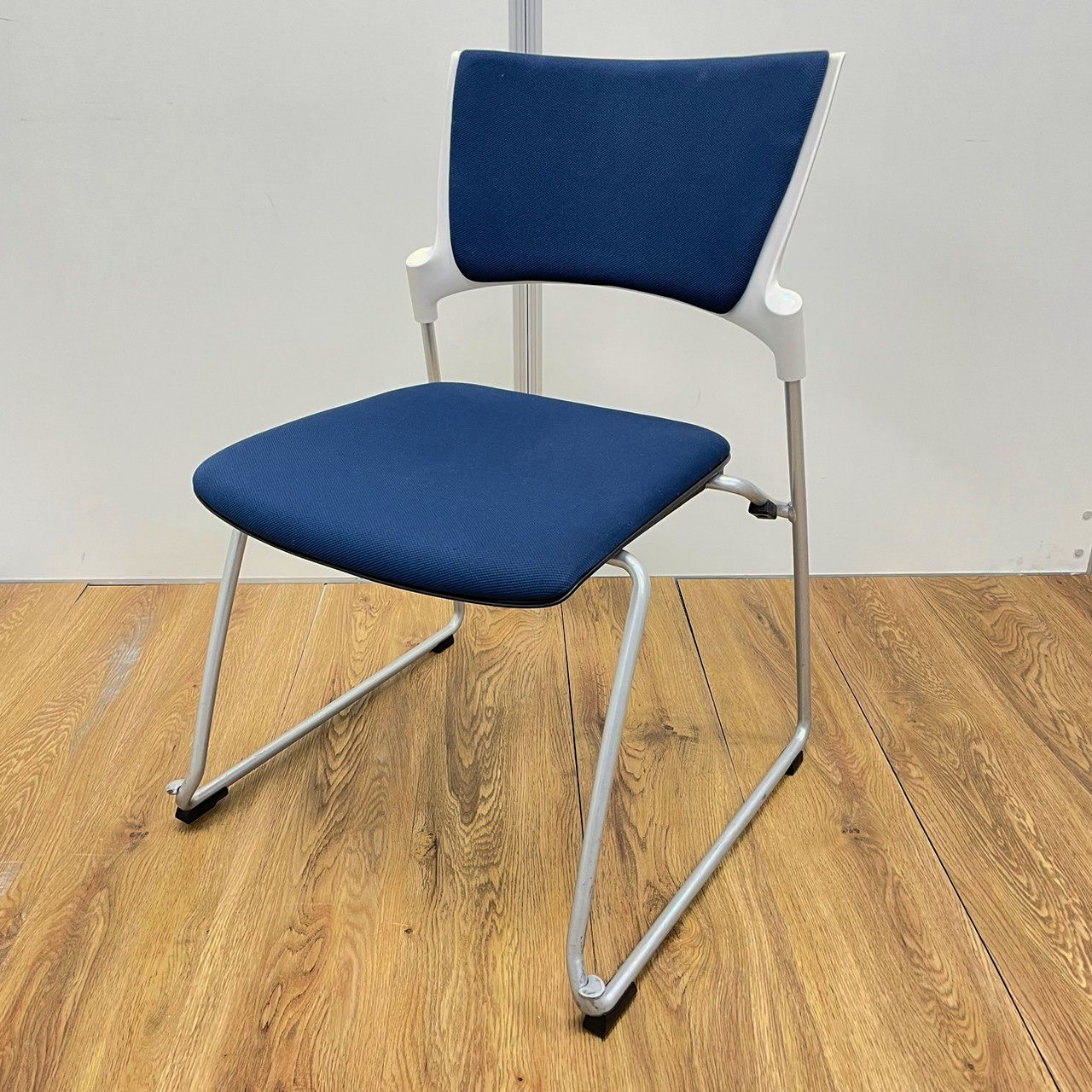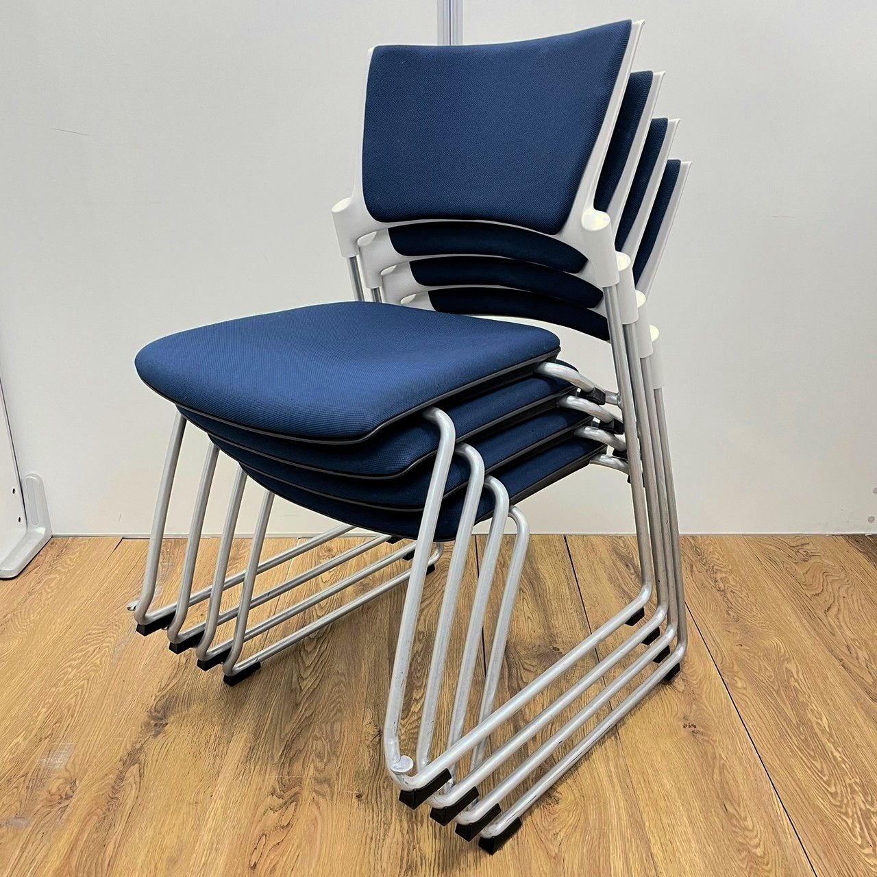 【座面側面に小さな破れあり】【4脚セット】イトーキ製 マノスシリーズ ブルー スタッキングチェア!!- 京都東寺店