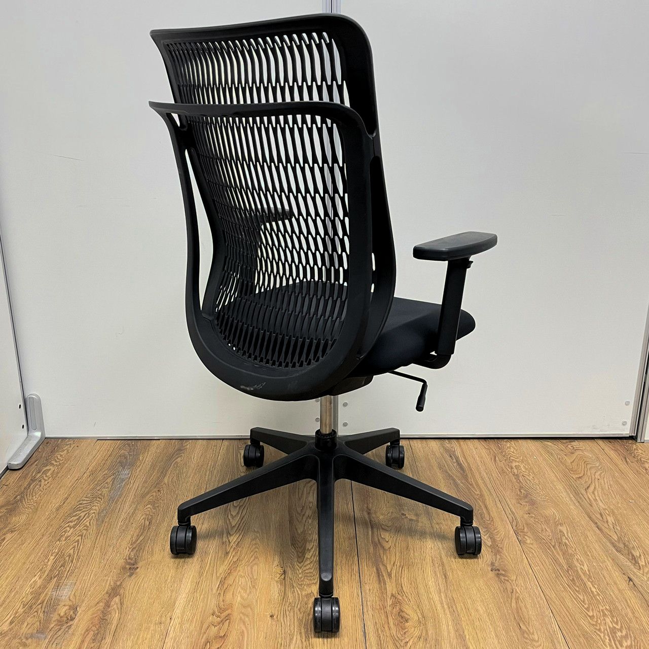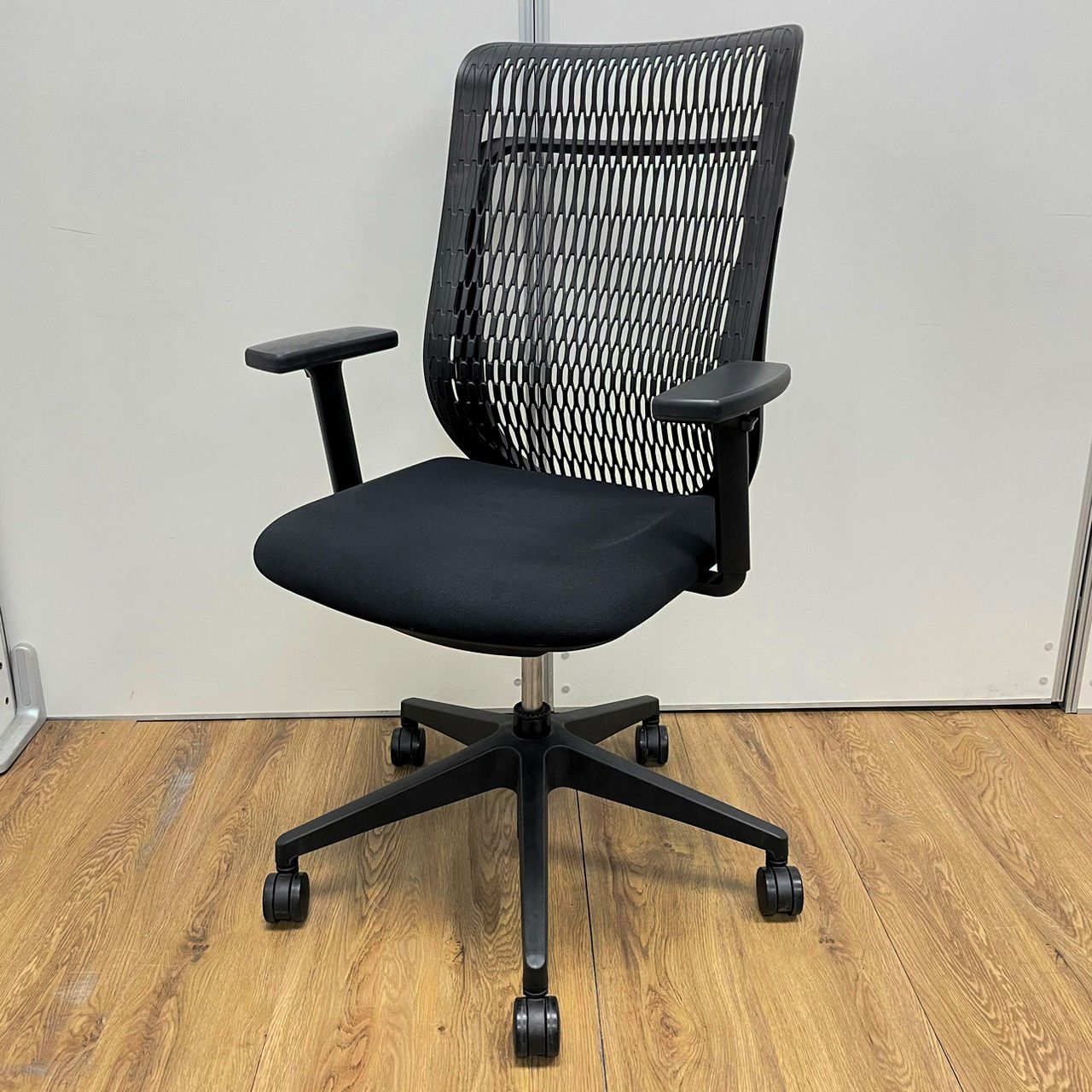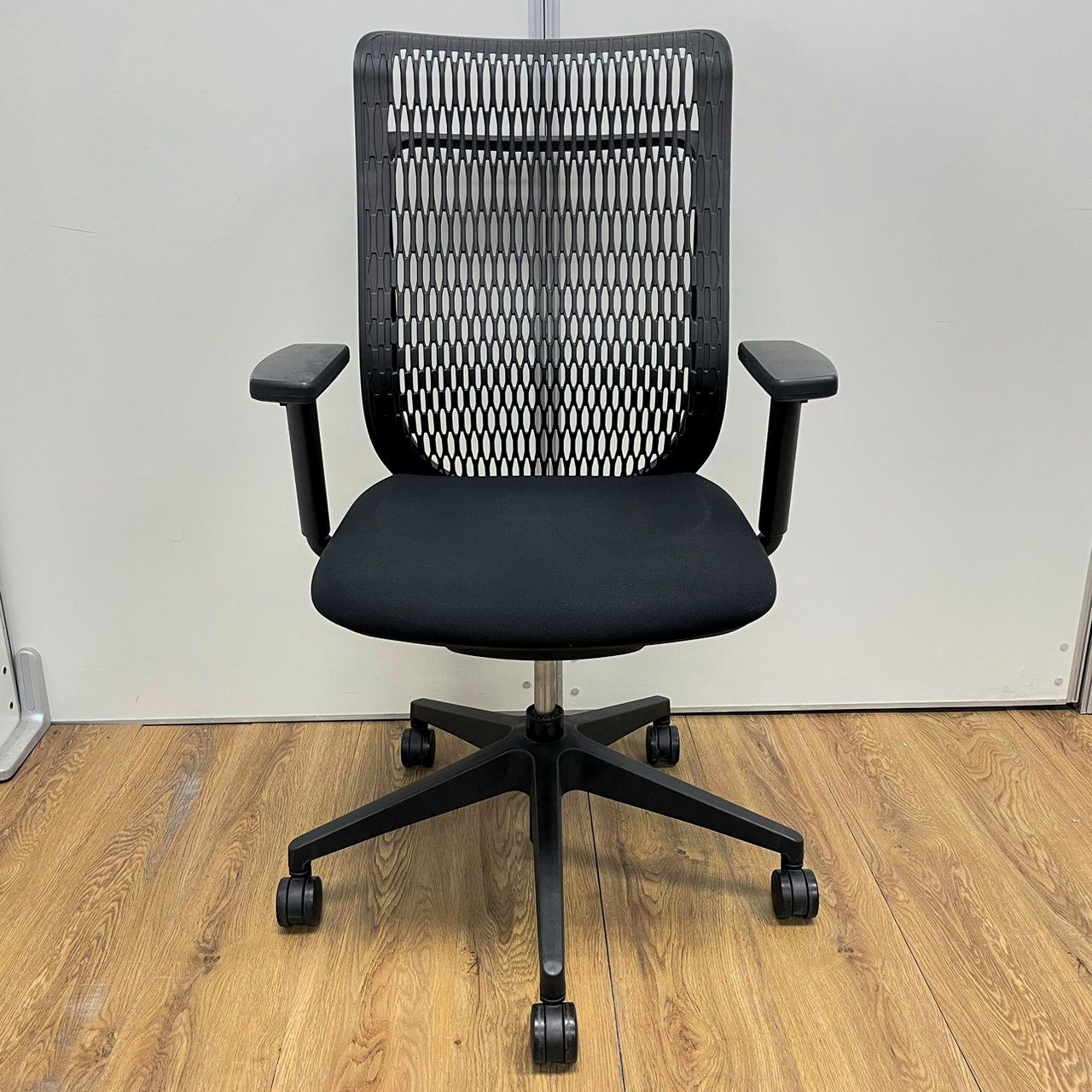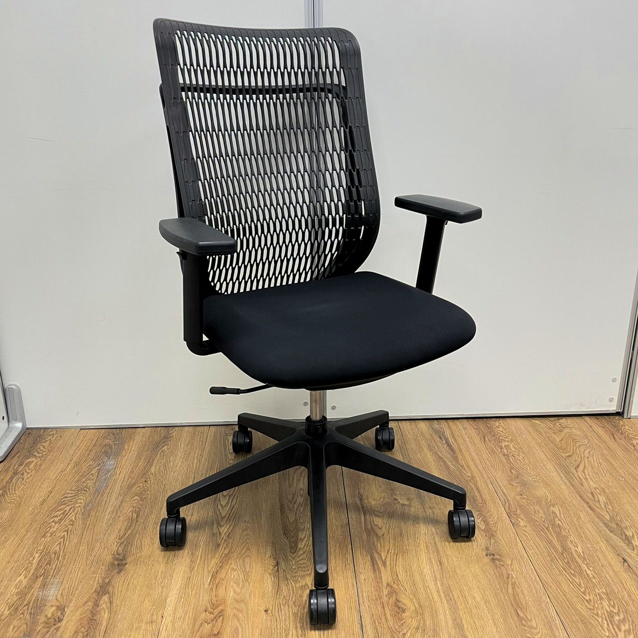 AJ CHAIRは、エリアごとに大きさの異なる編み目を配置したポリアミド3Dメッシュの背もたれが特徴!