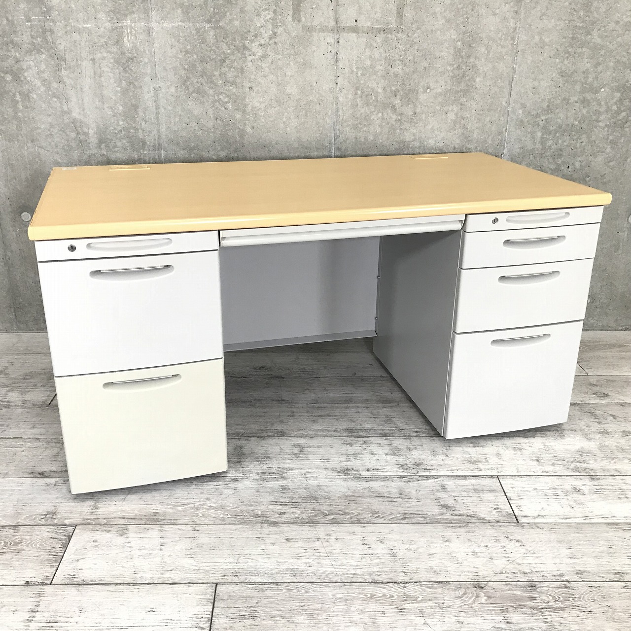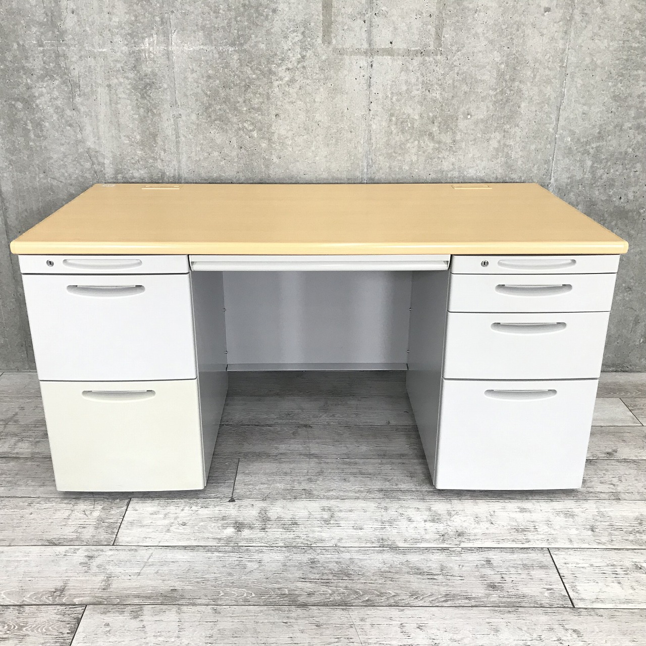 レア商品入荷!部材欠け有りのためお安い!天板木目の両袖机の入荷です!■オカムラ/SD-V/天板ナチュラル/本体ニューグレー- 立川・八王子店