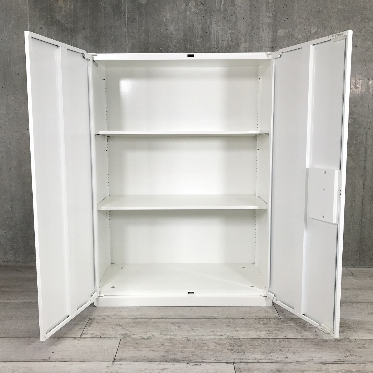 おすすめ/大人気 ■オカムラ(okamura)製 レクトラインシリーズ 両開き書庫 ローキャビネット ■色:ホワイト ■シリンダー鍵