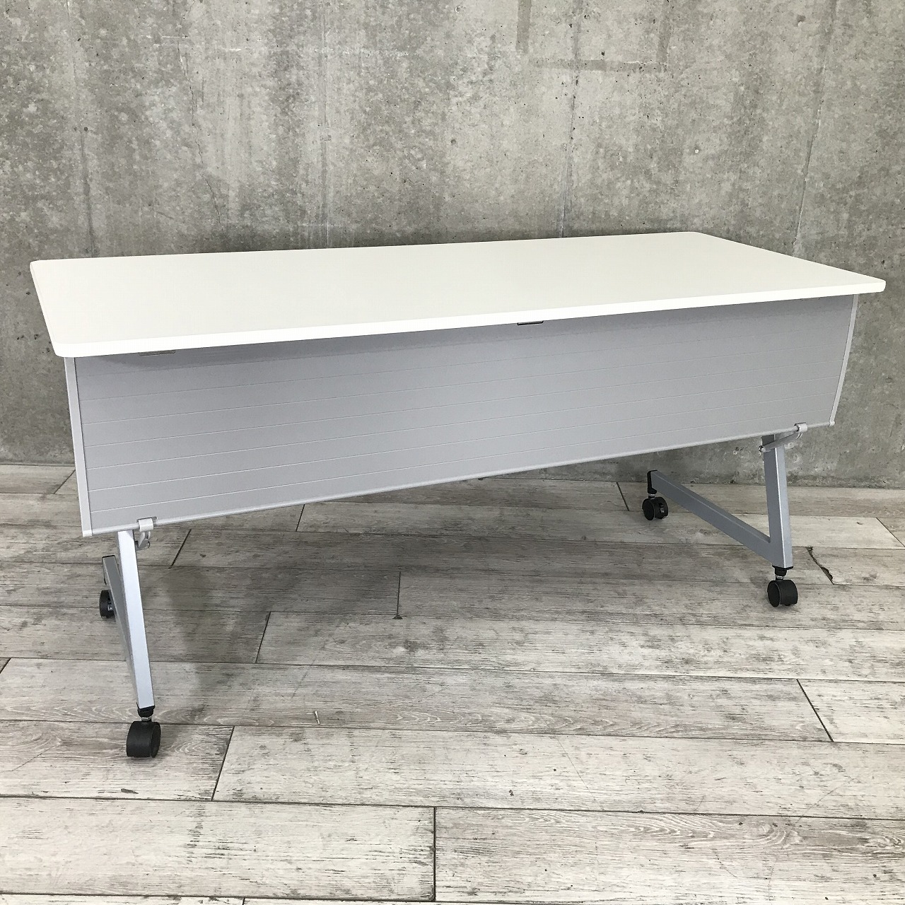 【天板跳ね上げ式でコンパクトに収納!2人使用にお勧め!】■イトーキ(ITOKI) HXシリーズ サイドスタックテーブル 幅1500×奥行600 ■幕板付き ■ホワイト天板