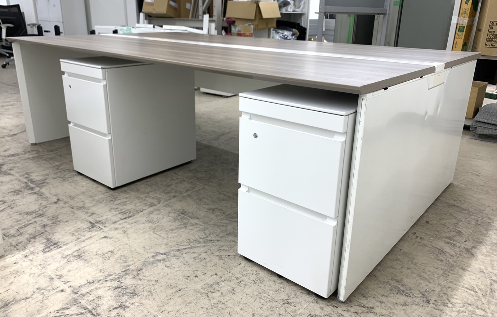 【幅2400mm】レイアウト変更必須!大人気フリアドデスク&ワゴン4台セット※天板プライズウッドミディアムカラー◆オカムラ製(MX62)【RP】- 埼玉本店