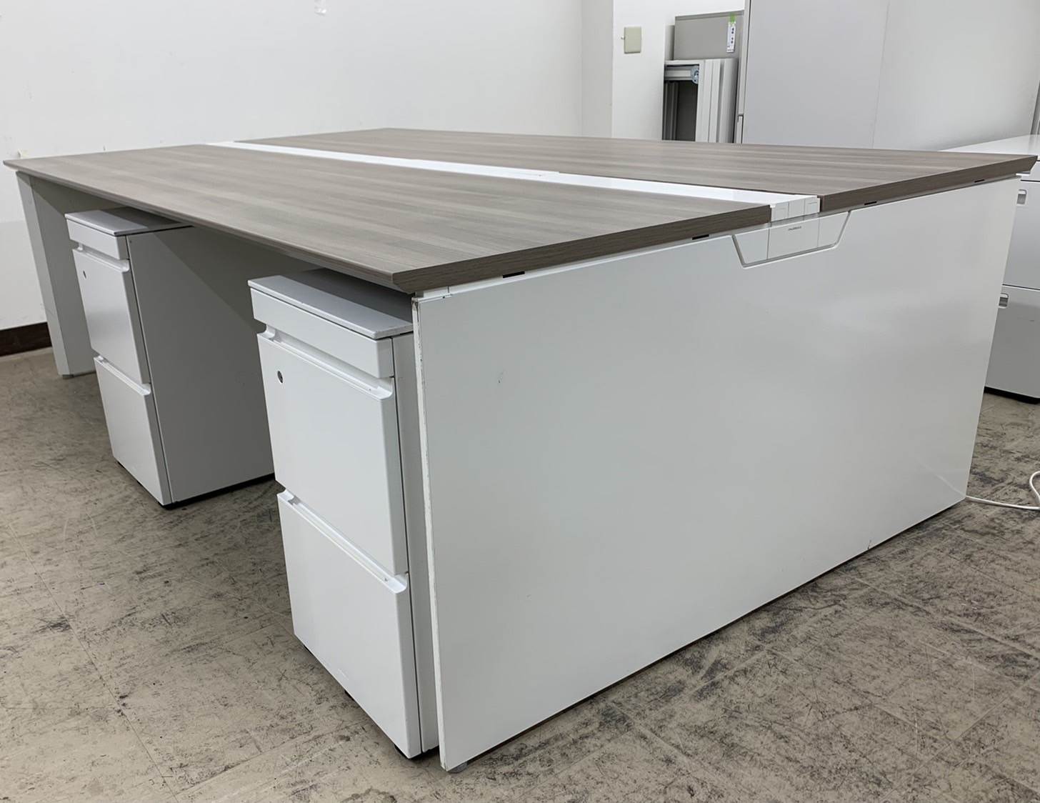 【今の流行はフリーアドレス!デスクの新定番!】オカムラ フリーウェイ ブラウン(MX62色) 幅2400㎜×奥行き1400㎜ 【関東倉庫在庫品】