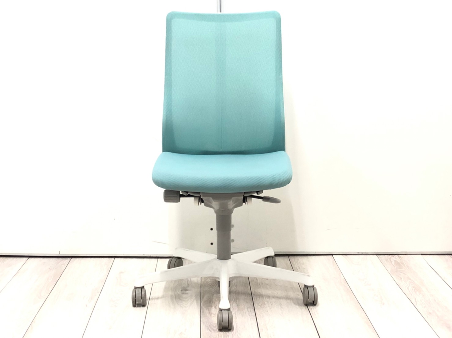 入替セール品につきお値下げ!【オカムラ現行品のメッシュチェア!状態良好品が揃います!】オカムラ フルーエント ミディアムブルー ハイバック 肘無し メッシュ