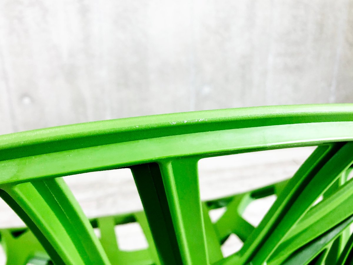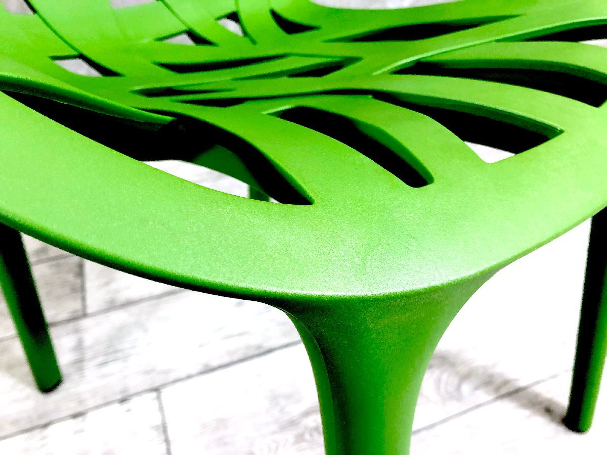 葉脈をモチーフにしたようなポリアミド製の成型シェルが特徴で、屋内外で使用可能。3脚までのスタッキングに対応するマルチガーデンチェアです。