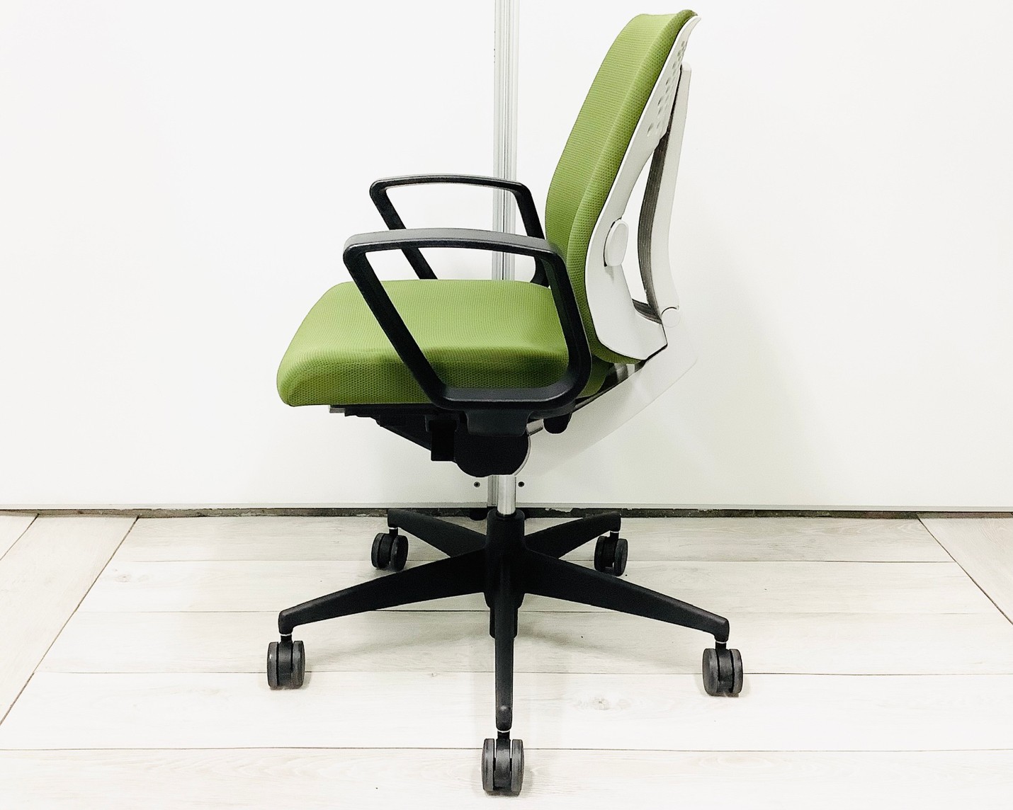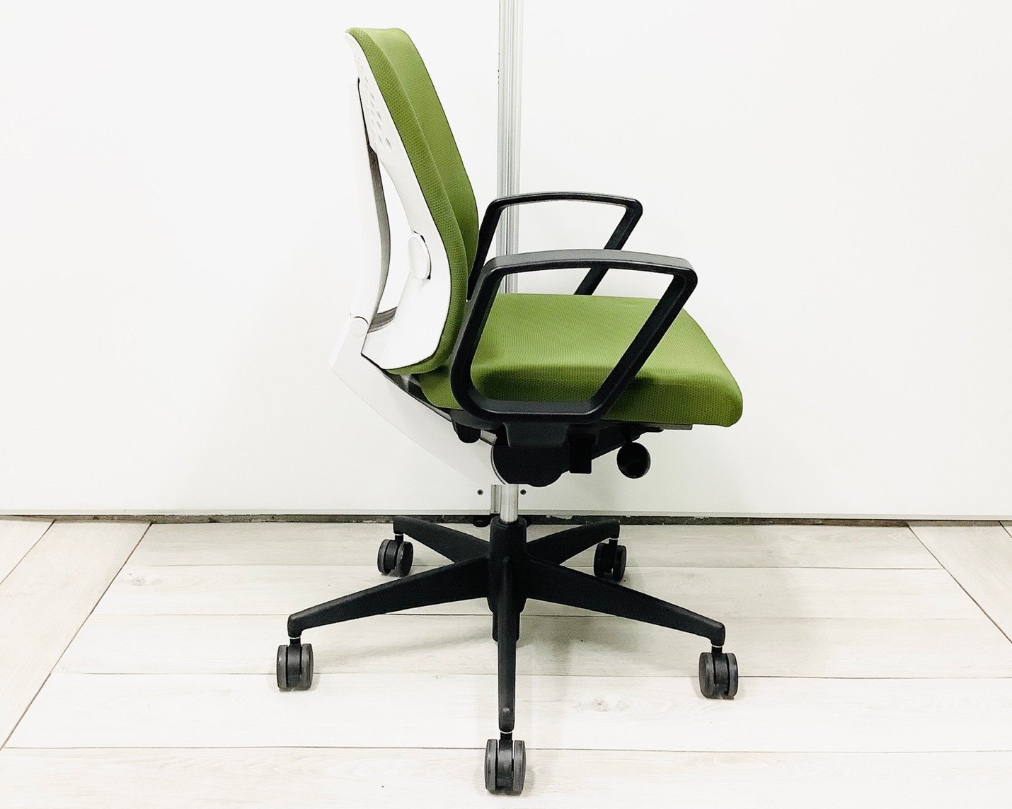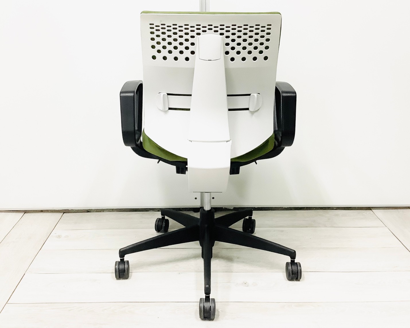 ★コクヨ製 ウィザード2 ライトオリーブ ホワイトフレーム 肘付き ローバック 固定肘 オフィスの王道! 納得の座り心地! 魔法のように売れ続けている定番のオフィスチェア! 肘付きローバックチェア!!