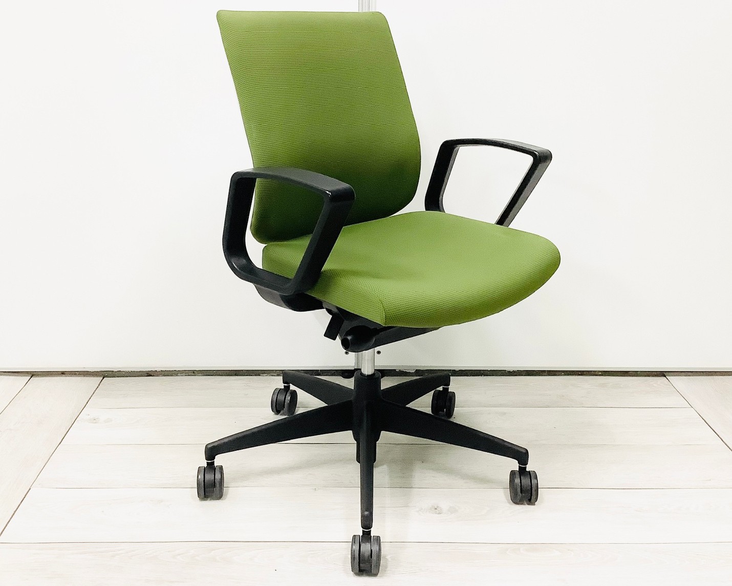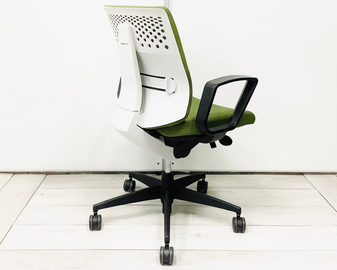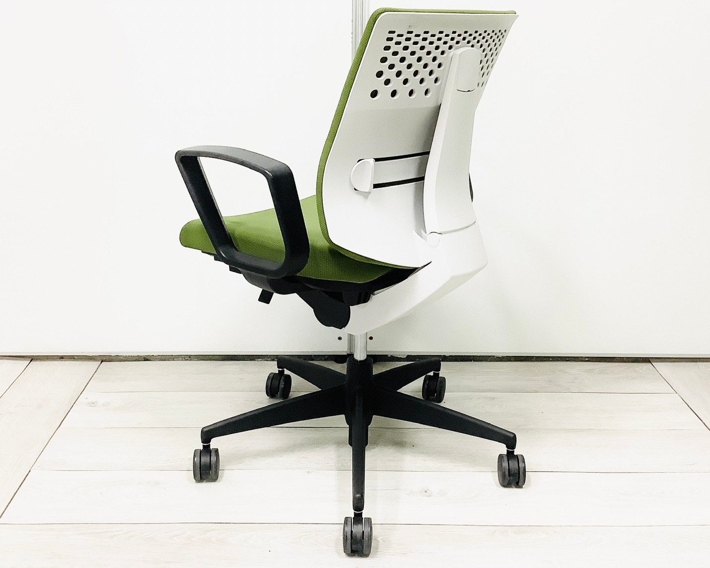 ★コクヨ製 ウィザード2 ライトオリーブ ホワイトフレーム 肘付き ローバック 固定肘 オフィスの王道! 納得の座り心地! 魔法のように売れ続けている定番のオフィスチェア! 肘付きローバックチェア!!