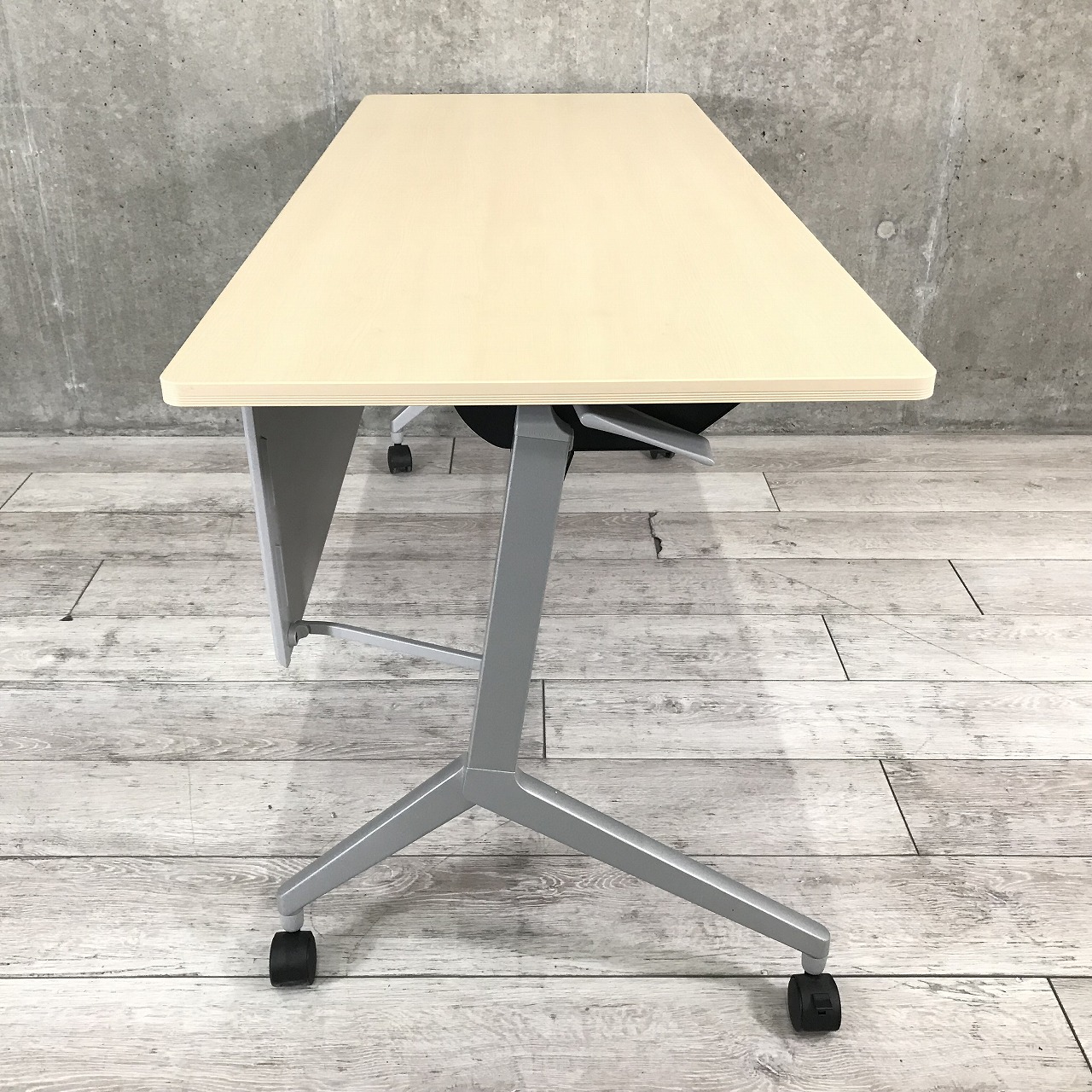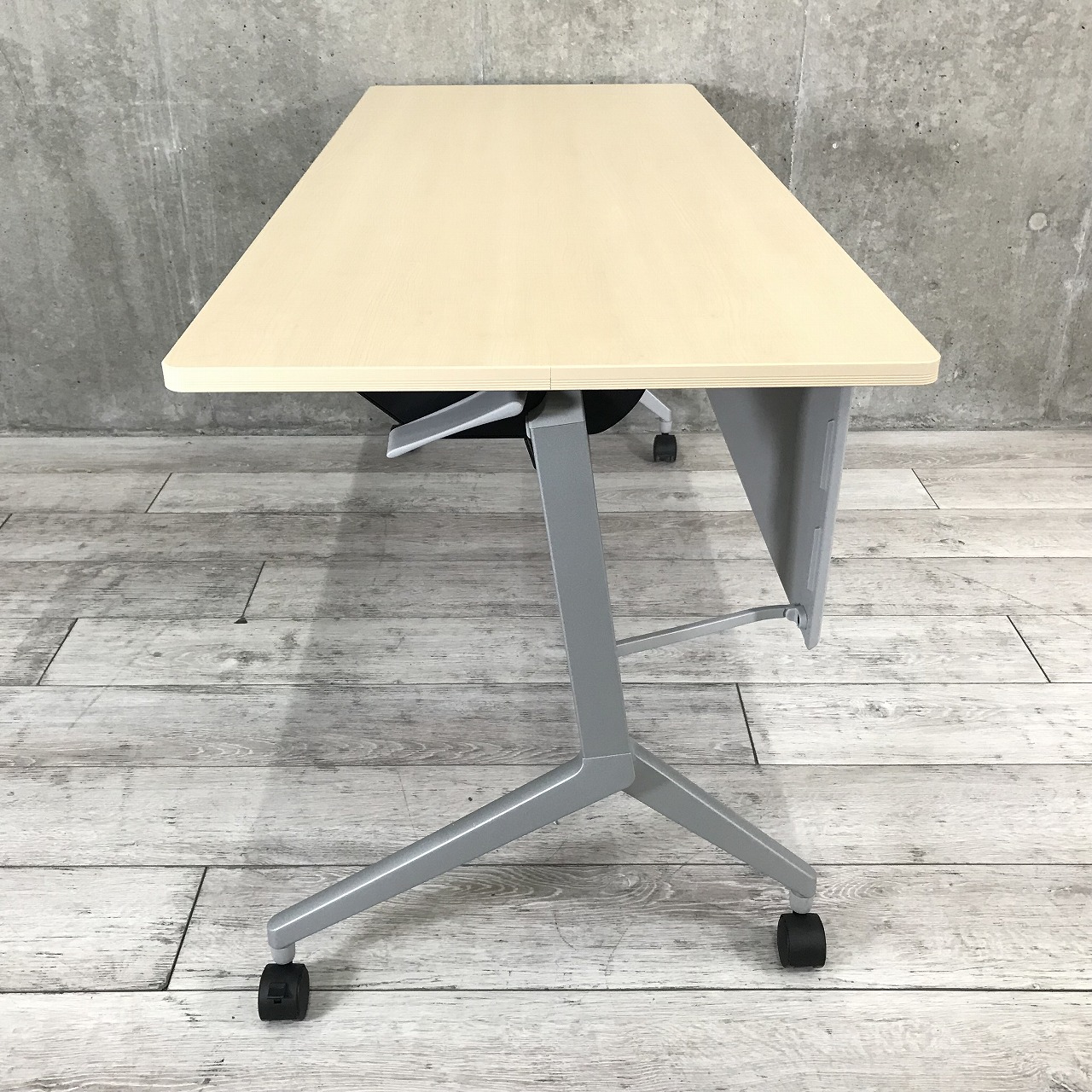 【会議・研修室などに・使わないときは畳んで省スペース!】■コクヨ(KOKUYO)製 リーフライン(Leafline)シリーズ サイドスタックテーブル フラップテーブル W1800×D600㎜ ■木目ナチュラル天板 ■幕板付き 【2~3名での使用に最適】