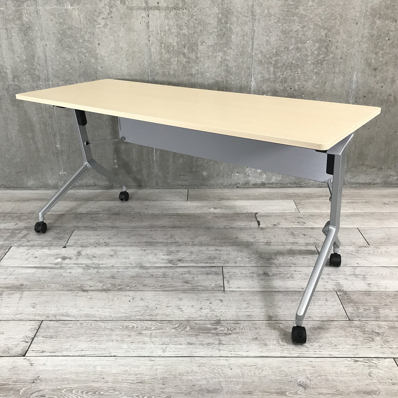 【2024年製!綺麗な状態です!】コクヨ リーフライン サイドスタックテーブル 木目ナチュラル 幕板あり 会議机 収納 折り畳みテーブル セミナー用 福岡 中古家具 安い 九州最大級《オフィスバスターズ福岡博多店は、福岡を拠点として、日本全国へ中古オフィス用品・オフィス家具を提供しております》