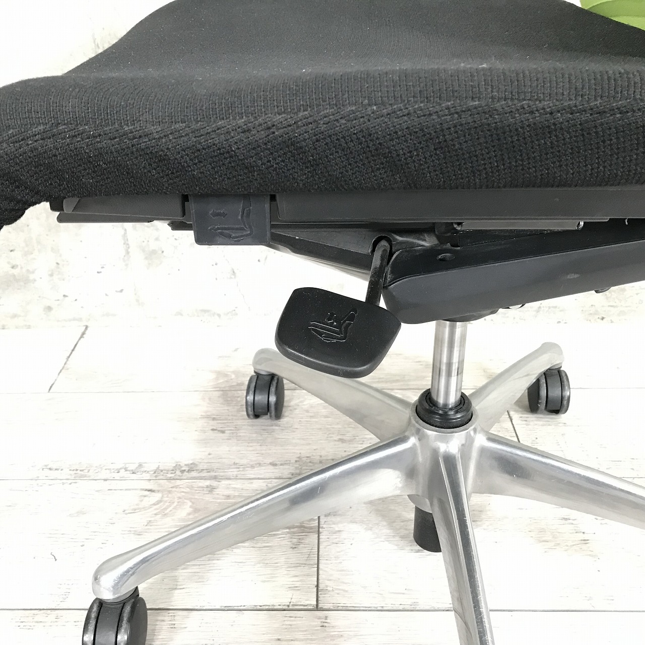 【人間工学に基づいた快適な座り心地! 背あてのしなやかな曲線が背中にフィット!】■オカムラ製 フィーゴチェア (feego) 肘無しハイバック シームレスタイプ ■ブラック×グリーン※コートハンガー外し跡のある商品となります。