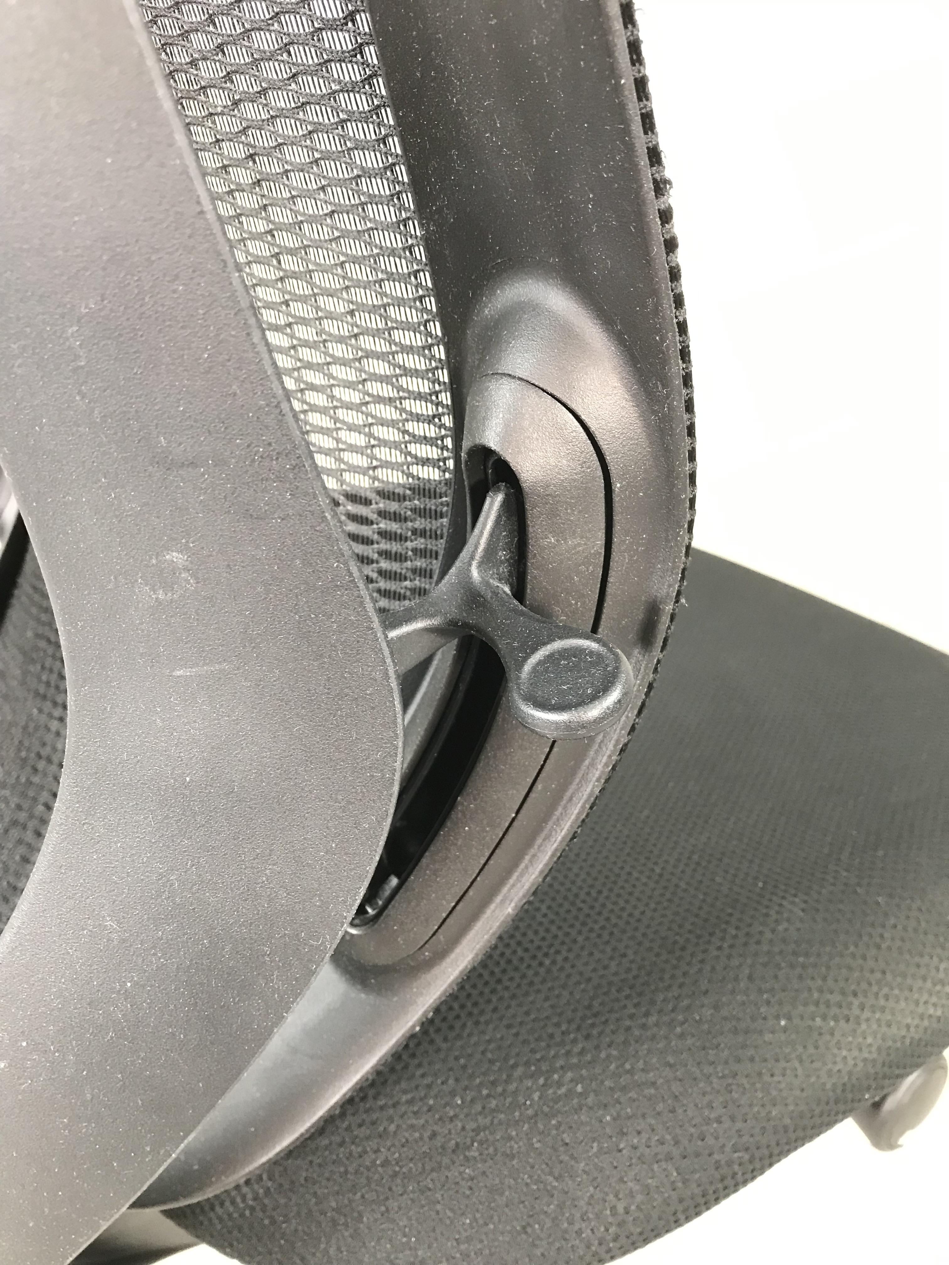 - 座面右下のダイヤル操作で、リクライニングの強弱調整が行えます。これまでのダイヤル式よりも、少ない回転数で、最弱?最強の調整が可能です。
