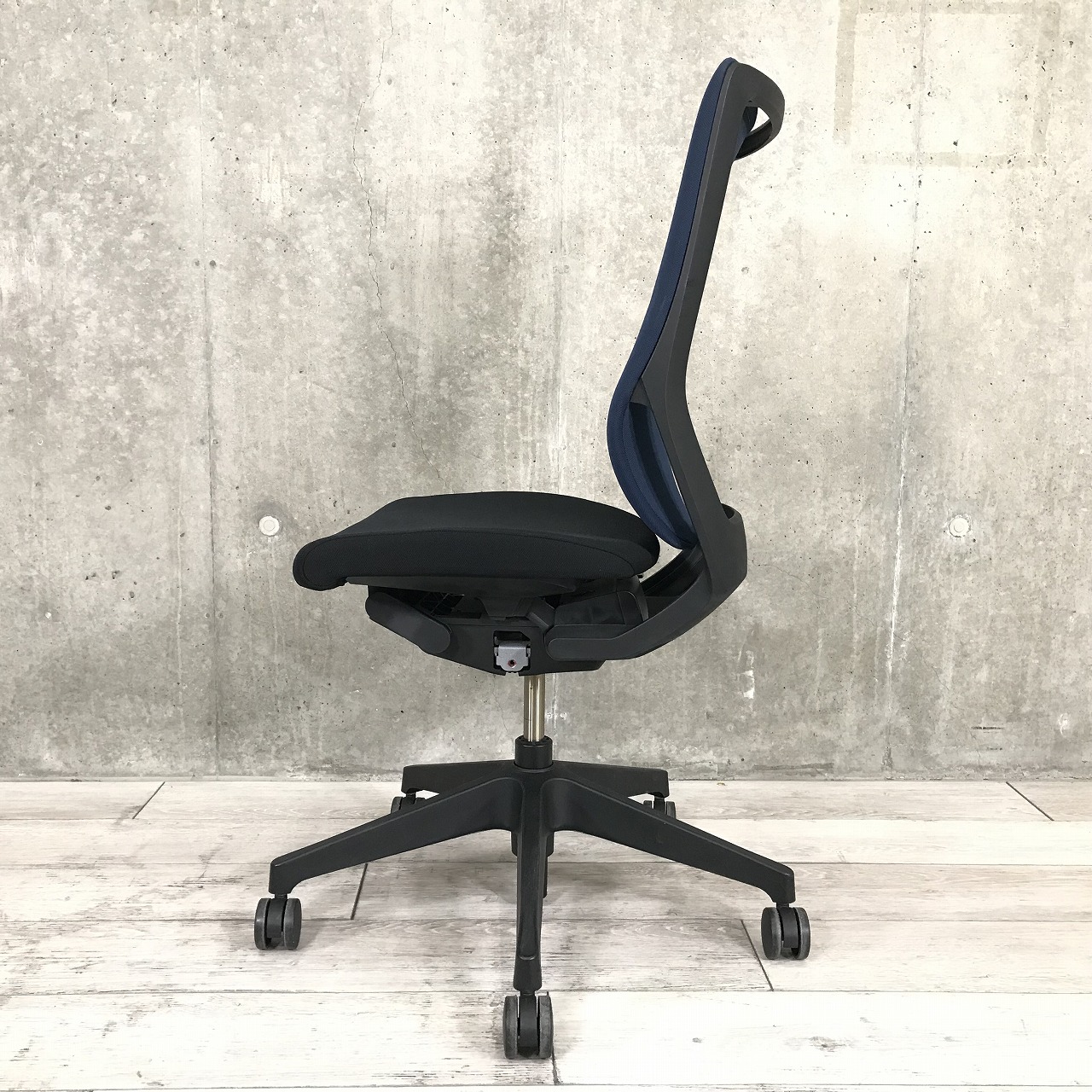 【操作レスな体重感応メカを搭載!!体格にマッチするエピオスチェア!】■イトーキ(ITOKI)製 エピオスチェア 肘無し ハイバック ■背面メッシュ:ネイビーブルー 座面クロス:ブラック