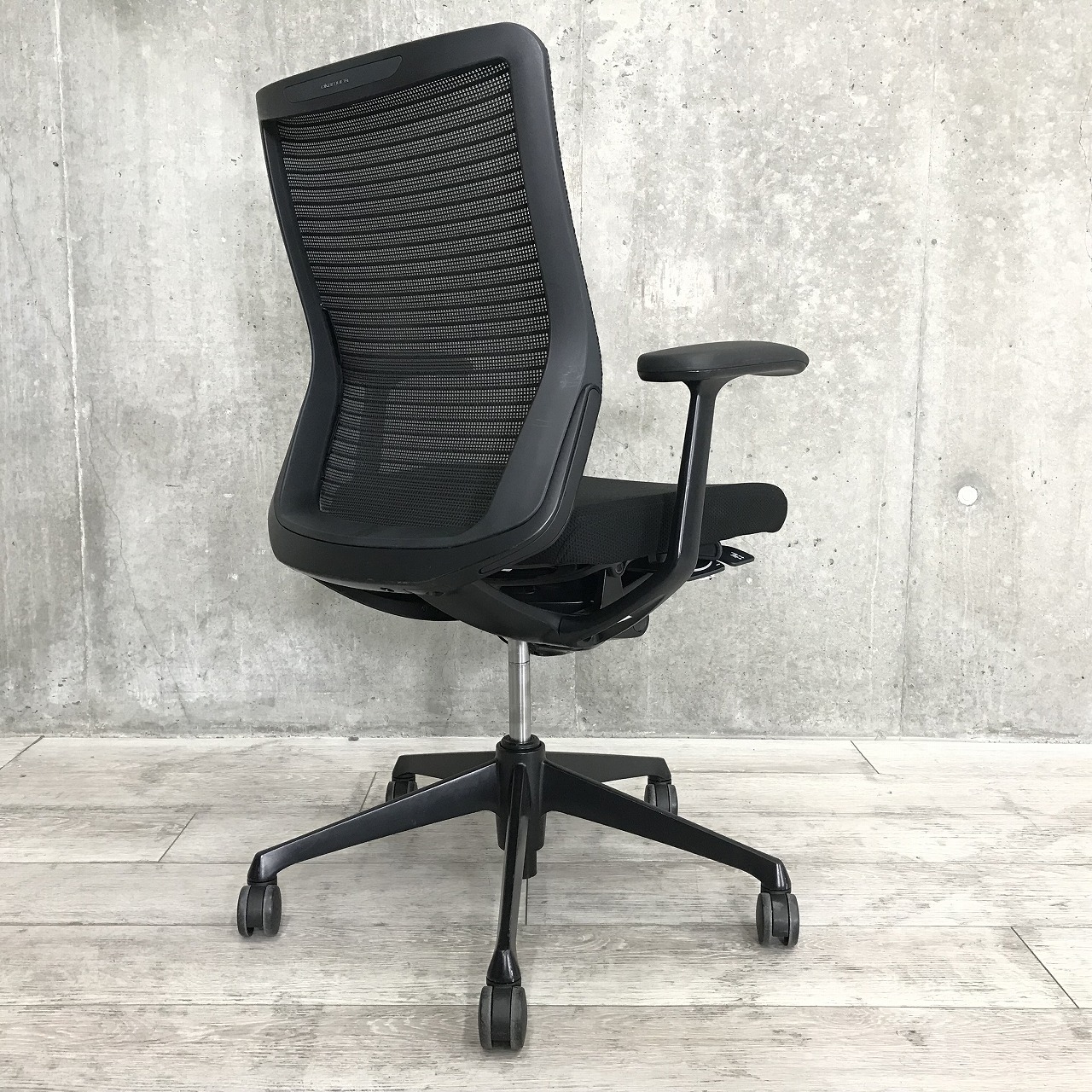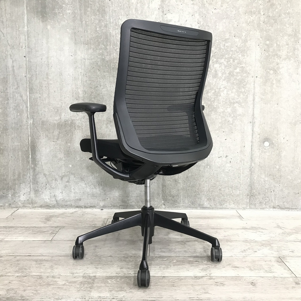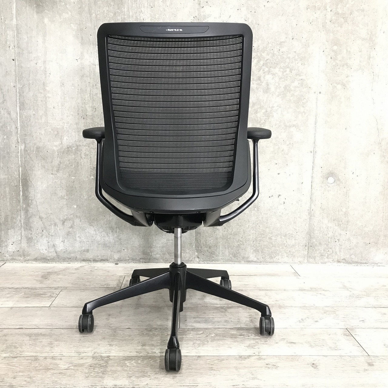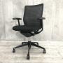 【背の低い方にもオススメ!】オカムラ コーラル ミドルバック 肘付 メッシュ ブラック 【固定肘タイプの脚までオールブラック仕様!】- 足立・葛飾店