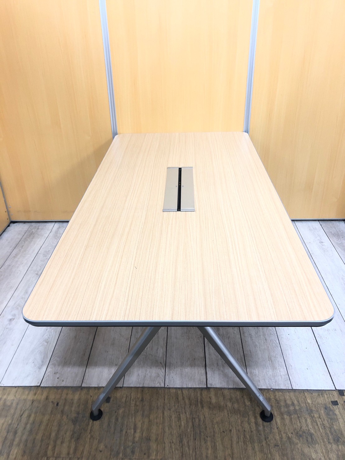 【会議室だけでなく休憩室でも!6~8名様対応・大型テーブル】■イトーキ(ITOKI) DDDシリーズ ミーティングテーブル 会議テーブル 幅2400×奥行900mm ■木目ナチュラル天板 脚シルバー色 オフィスバスターズ東大阪店