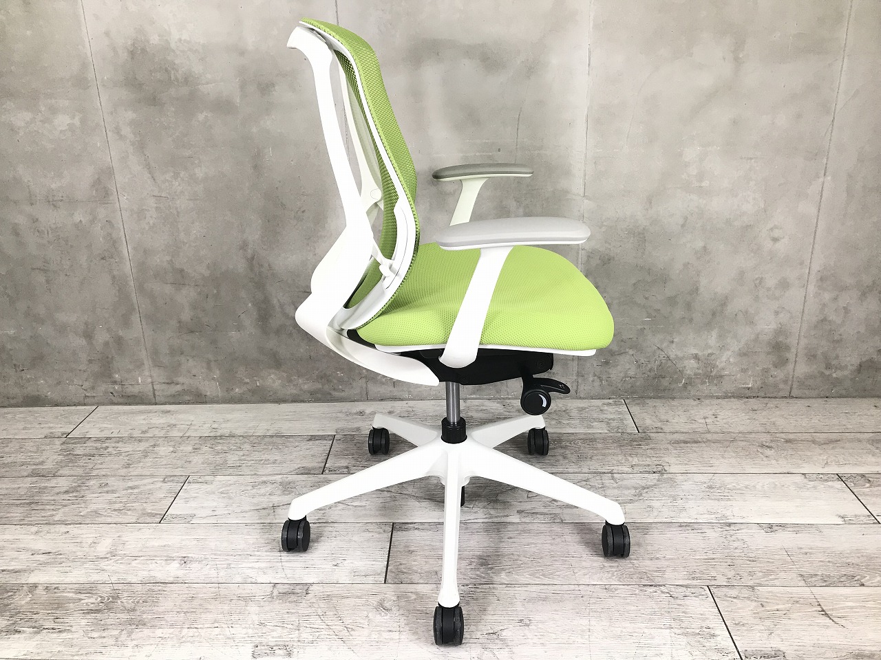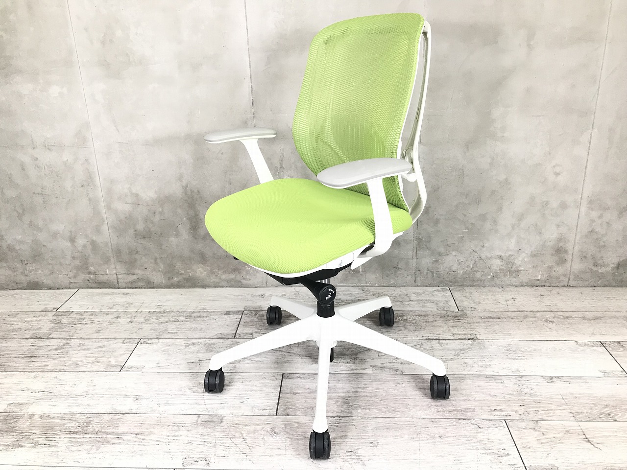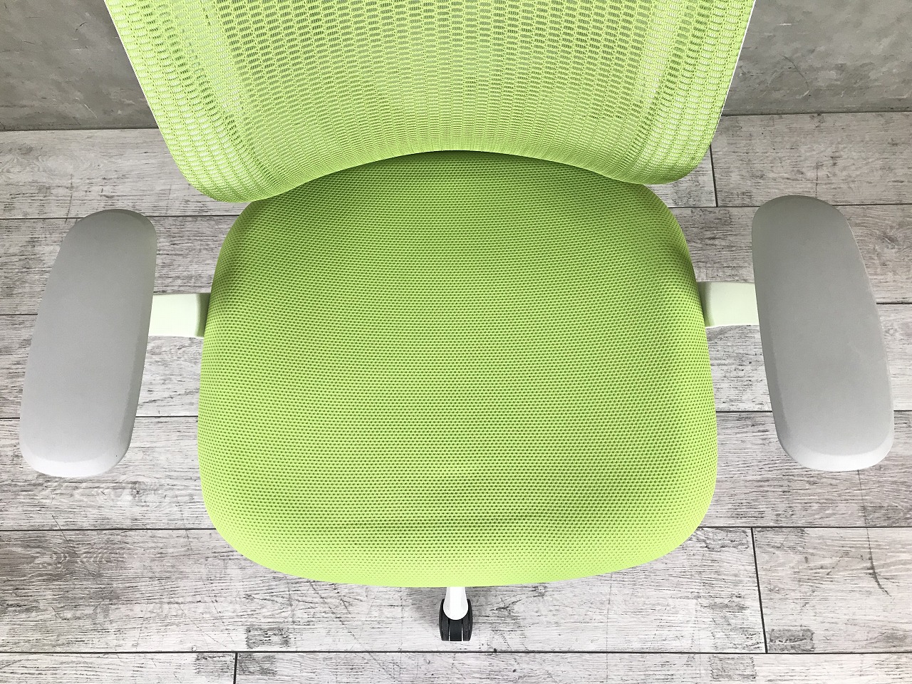 【ロット入荷!】鮮やかなカラーとメッシュ仕様!前傾機能付きで優秀! ■オカムラ/シルフィー/ライムグリーン/肘掛け付きサーキュラーバリューCO2削減量の算出について