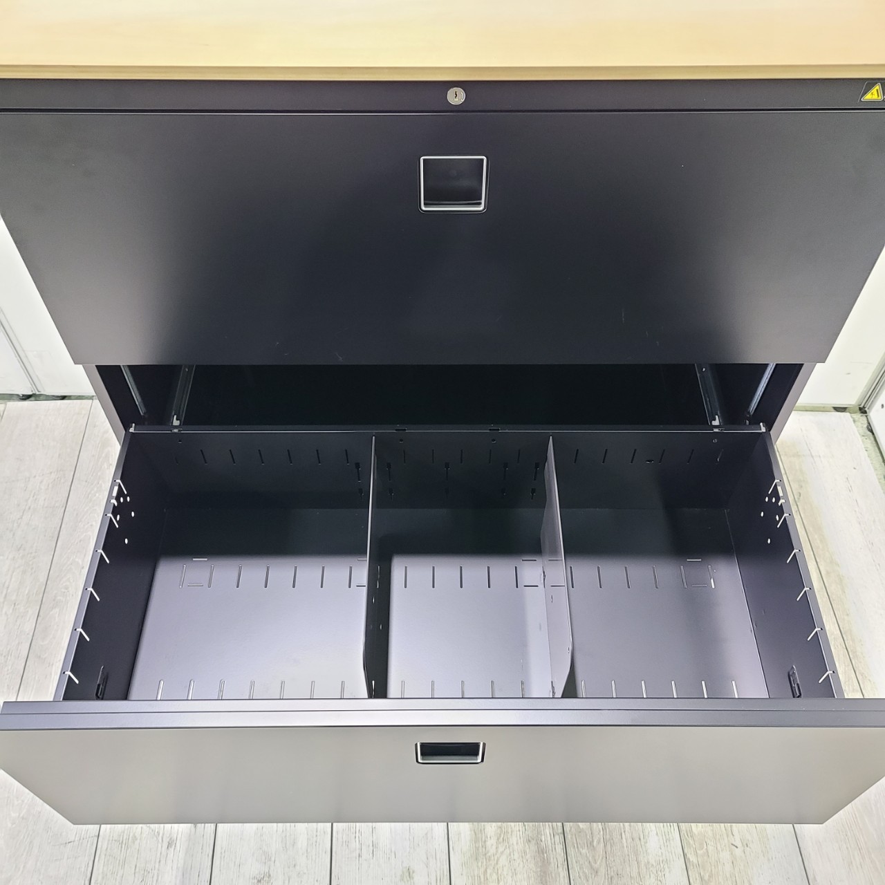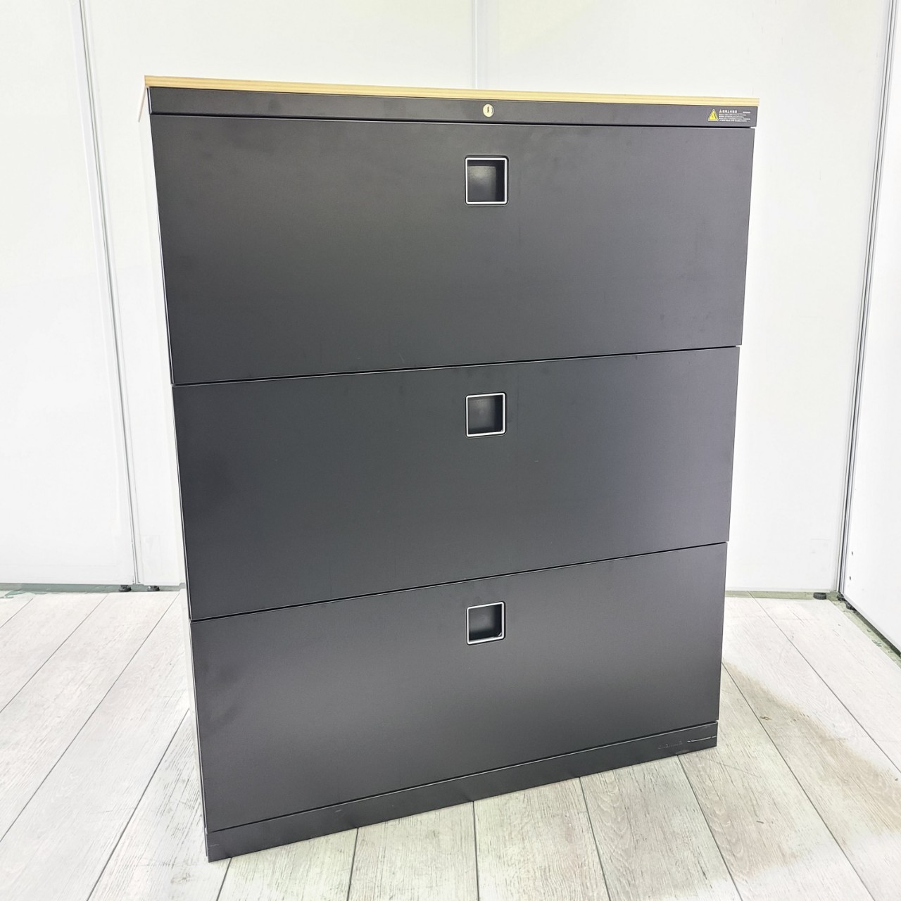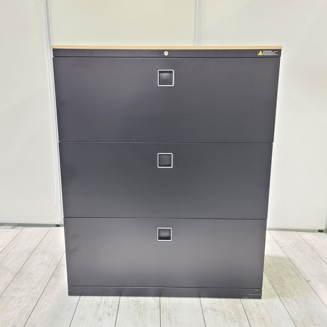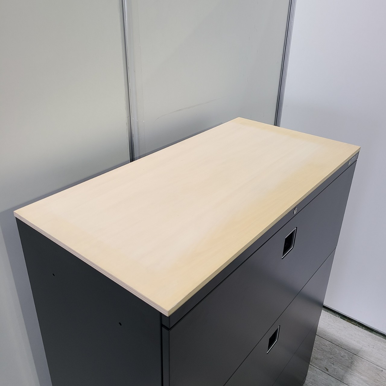 【超レアなブラック色!】オカムラ製/レクトラインシリーズ珍しいブラックカラー/ブラウン天板付き/3段ラテラル【BKNA】