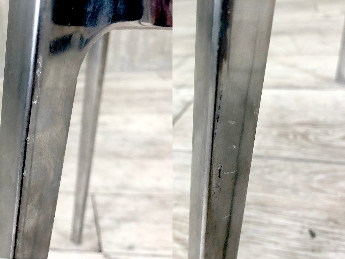 - 目立つ箇所あり傷・破れ・ほつれ・へたり・しわが多数または深い傷・破れ・ほつれ・へたり・しわが一部ある。※座面・背もたれ、シェル、脚部等にある。