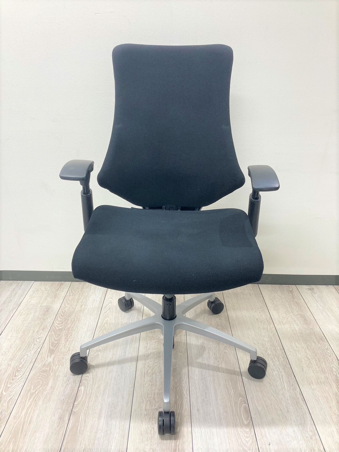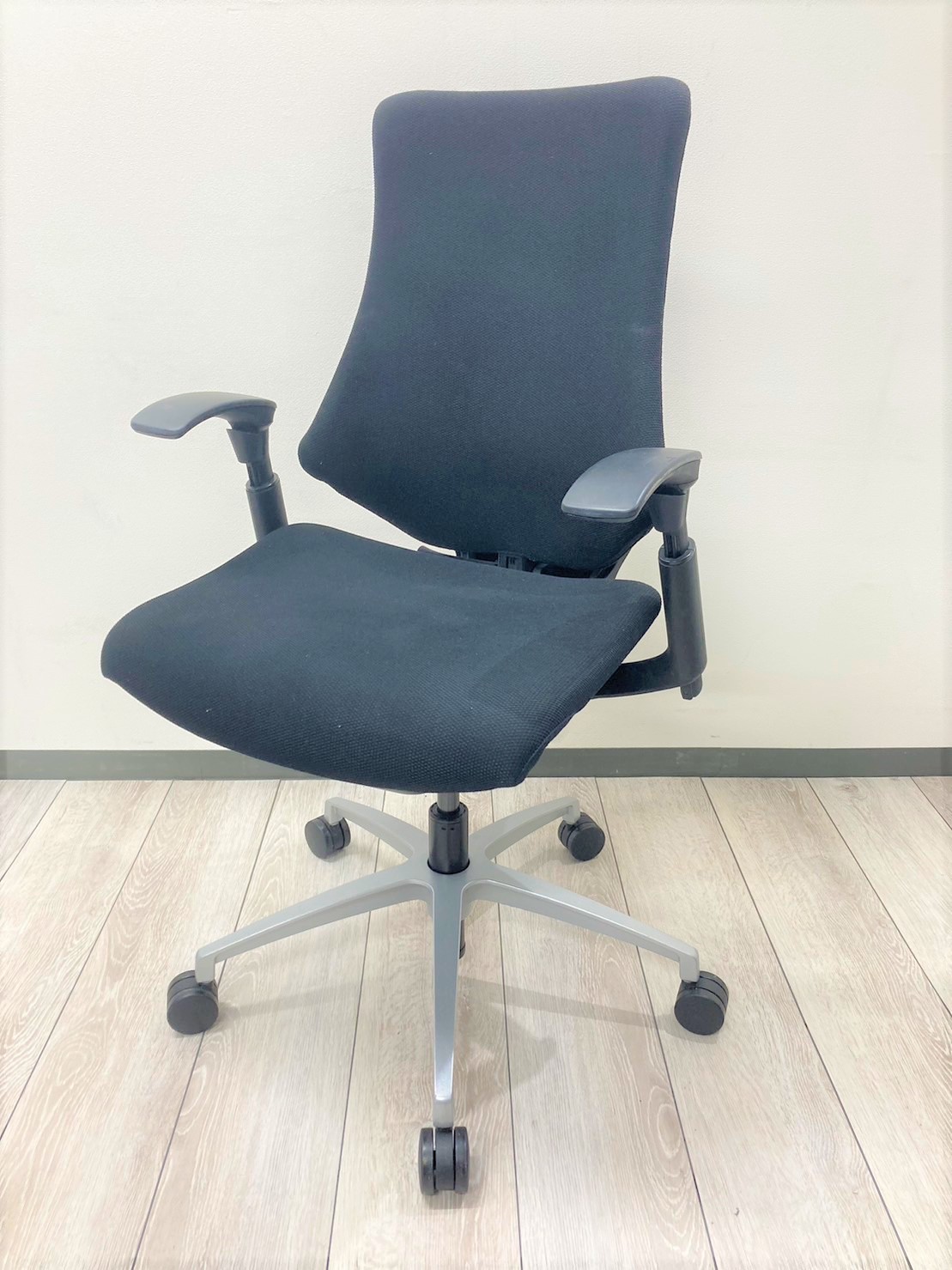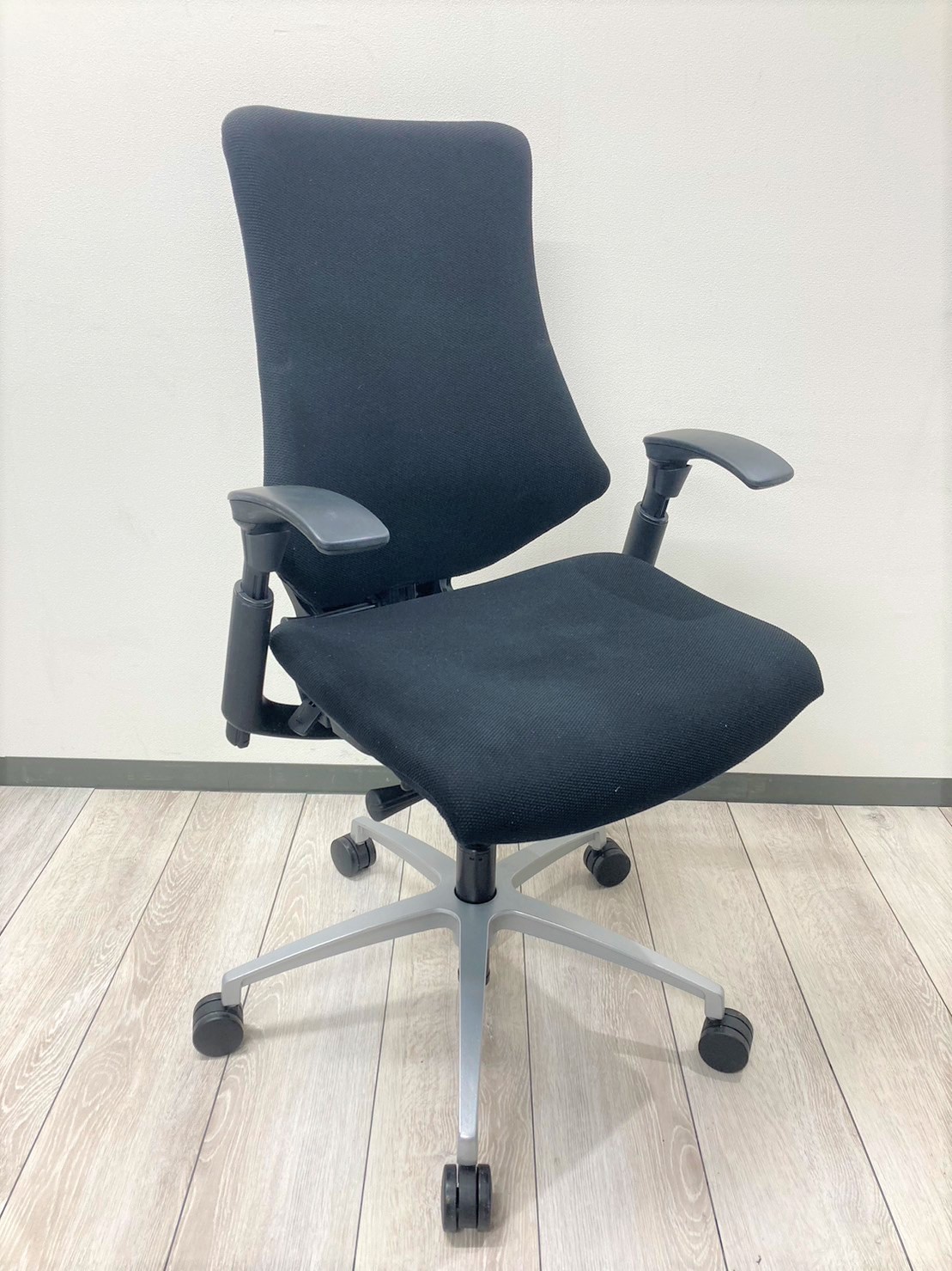 【三次元フォルムが腰にフィット!】希少なエラストマータイプ! ■イトーキ製 エフチェア 肘付 ブラック ハイバック ■姿勢の変化にフレキシブルに対応!