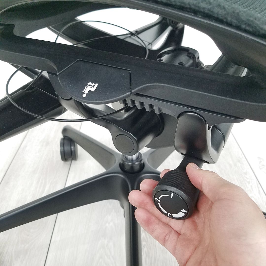 左右のアームレストの先端レバーで座面の高さとリクライニングを調整できるなど、