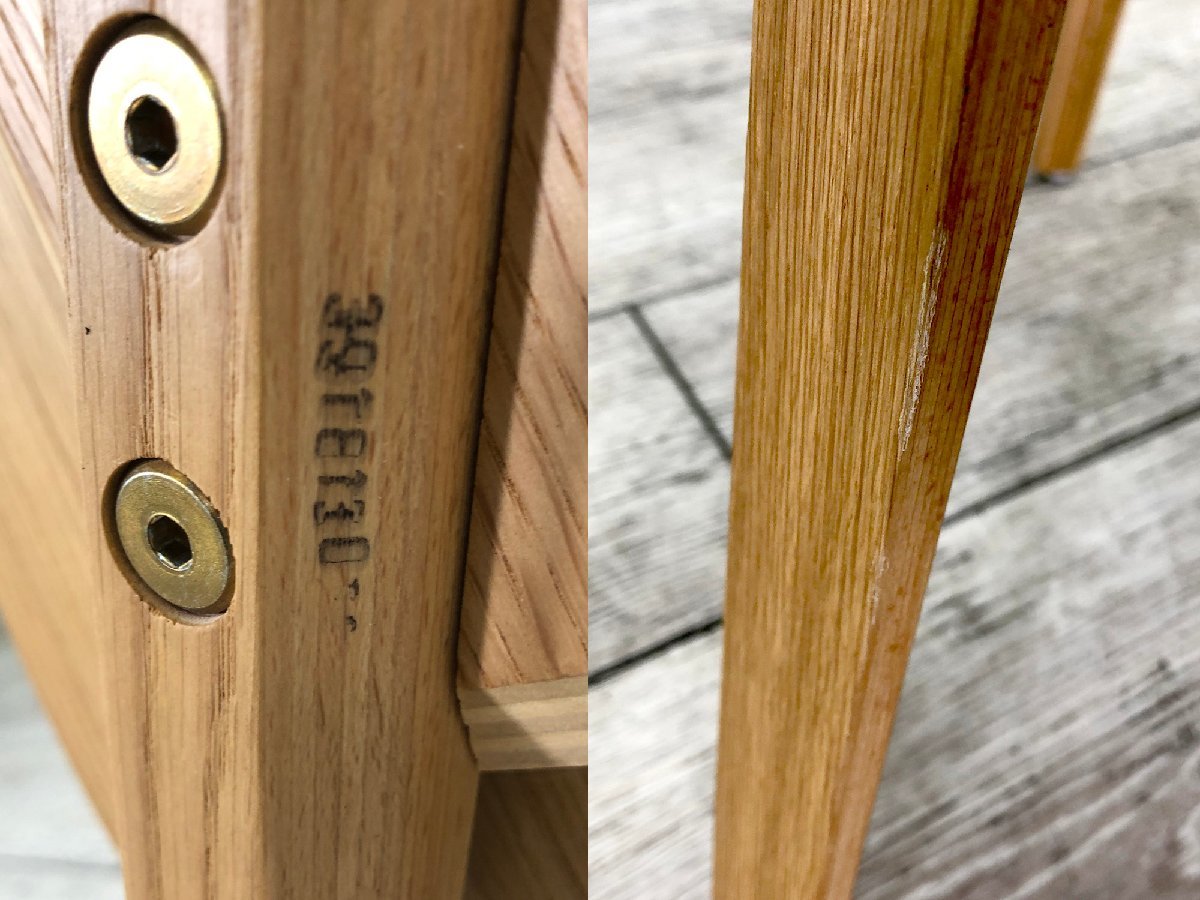 - 目立つ箇所あり傷・破れ・ほつれ・へたり・しわが多数または深い傷・破れ・ほつれ・へたり・しわが一部ある。※座面・背もたれ、シェル、脚部等にある。