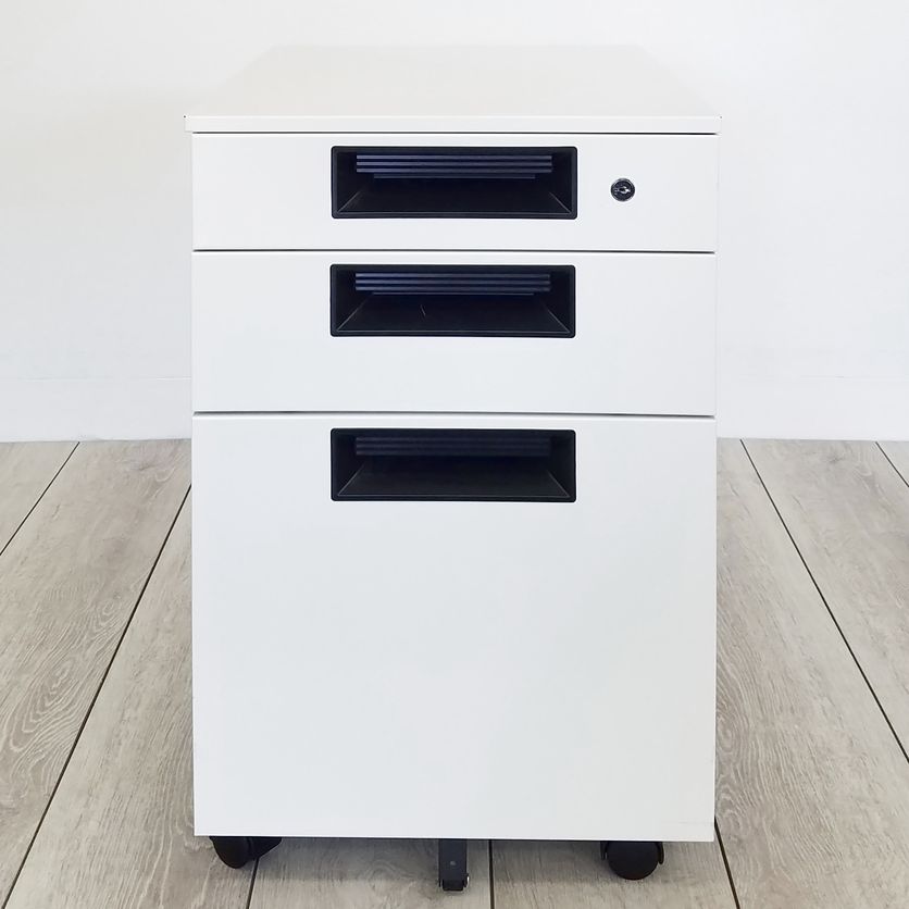 【1台入荷】プラス製 フラットライン ホワイト 3段ワゴン 収納 デスク オフィス シリンダー錠- 豊中・尼崎店