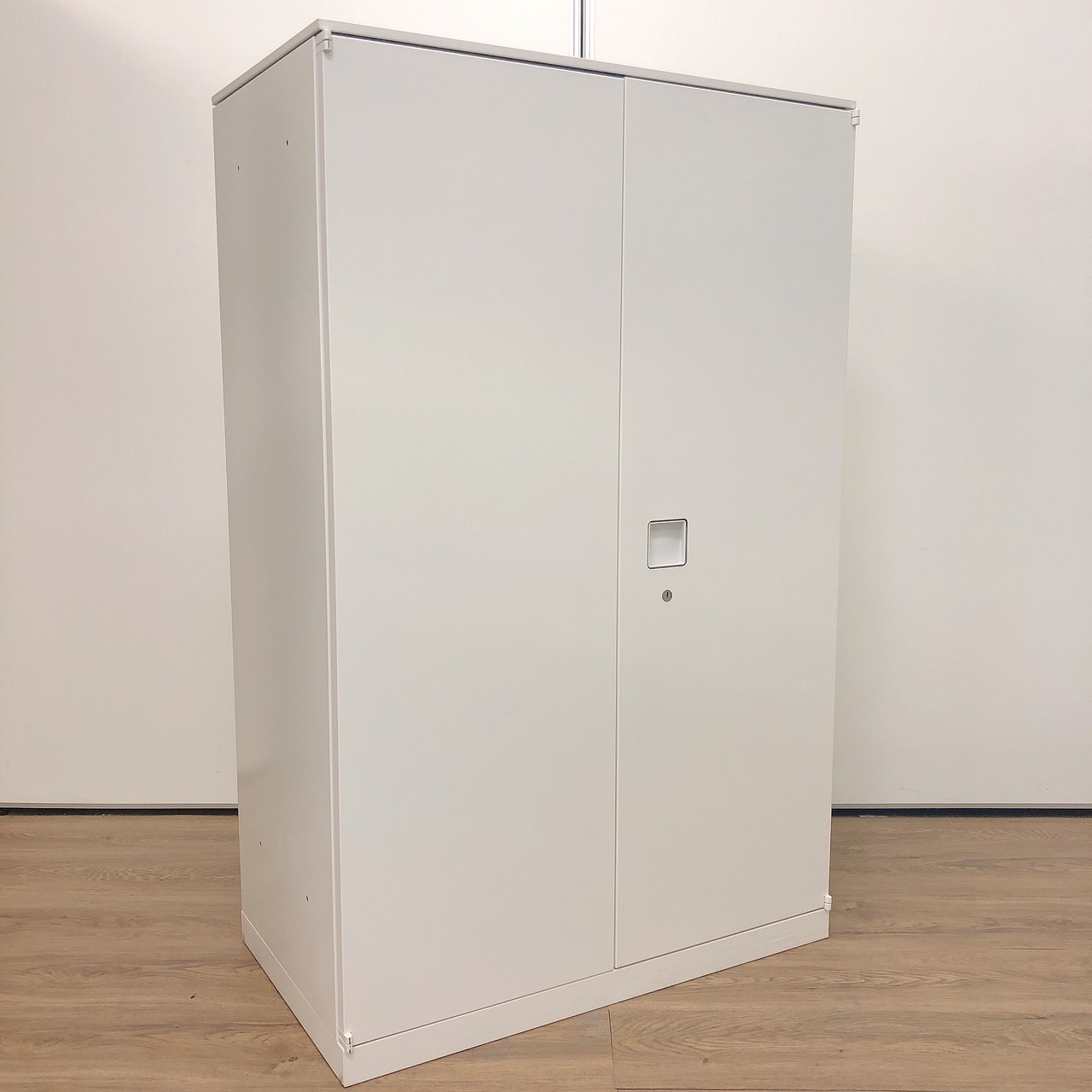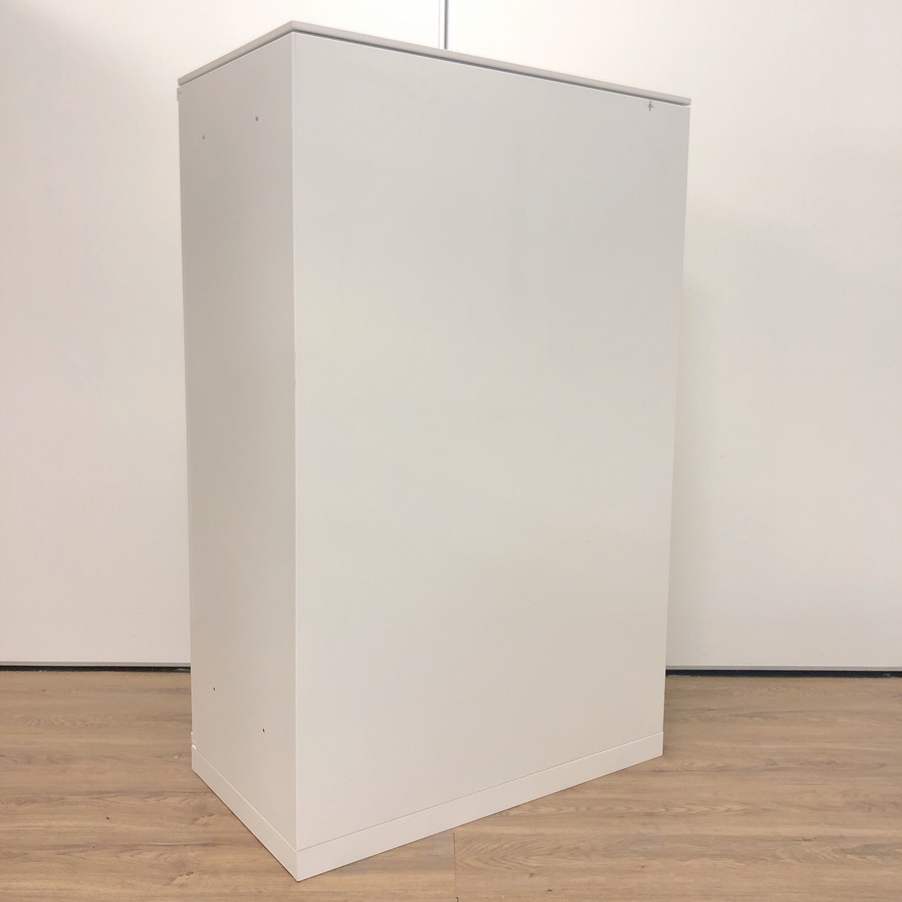 【オフィスの書類をスッキリ整理!取っ手がどの方向からでも開くマルチハンドルが人気!】■オカムラ(okamura)製 レクトラインシリーズ ローキャビネット 両開き書庫 H1250㎜ ■ホワイト ■シリンダー錠