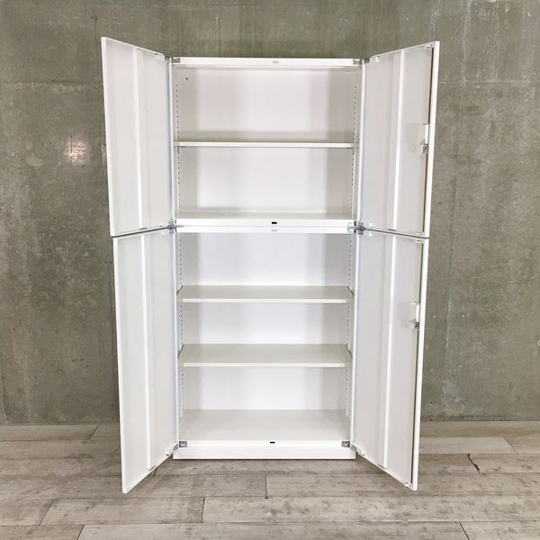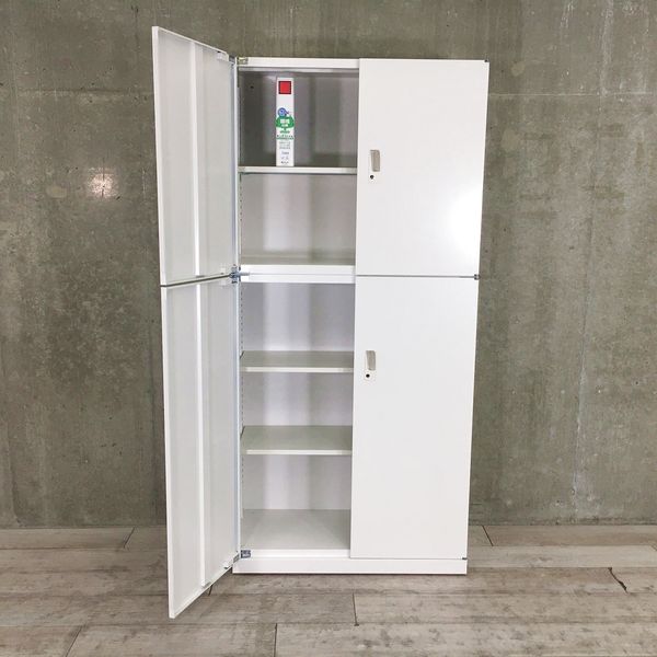 生興 両開き+両開きの上下書庫セット 鍵付き ホワイト おすすめ商品です- 名古屋千種店