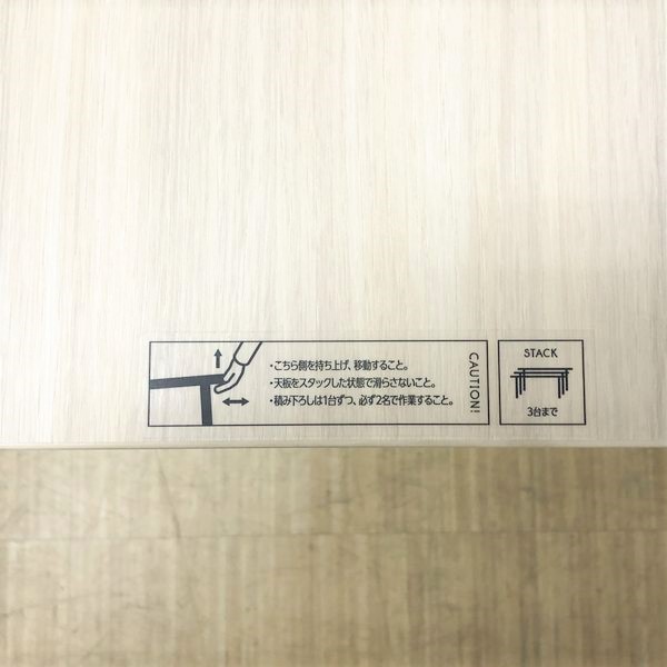 - 一部不具合あり天板歪み、アジャスター無し、キャスター使用不可ようなそのテーブルの本来の効用を果たすための機能以外の一部が使用不可な状態。(例、キャスターロッ ク機能使用不可、棚板無し等がある。)