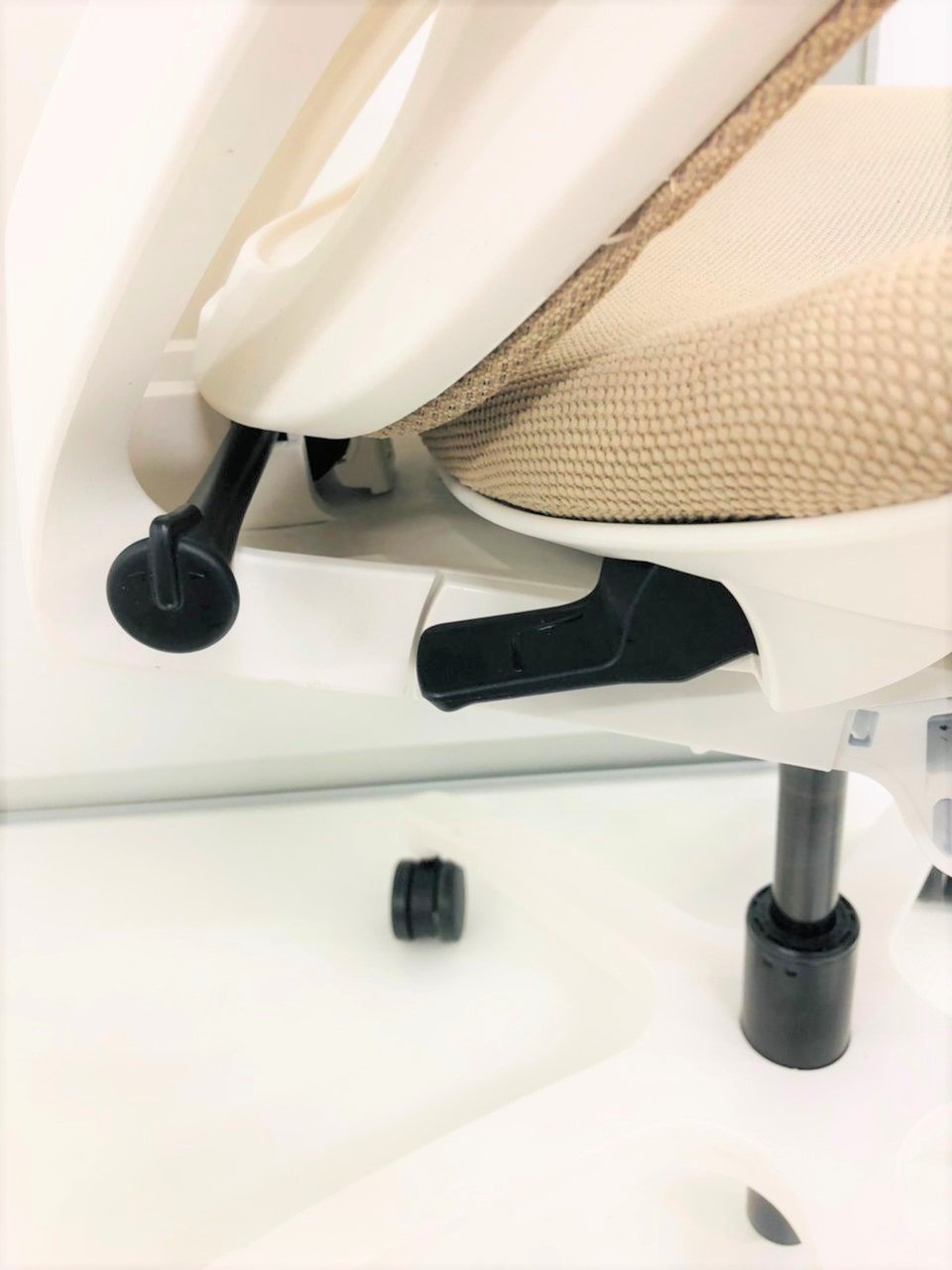 座面の側面裏側にあるレバー操作により