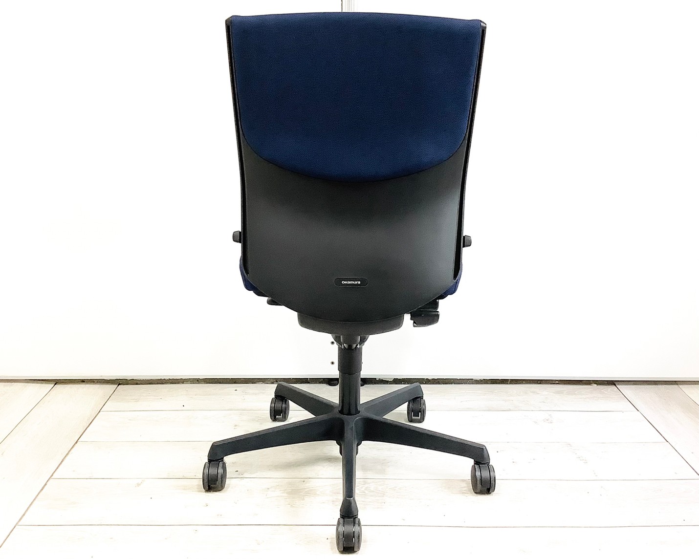 【人気チェア!肘無仕様でタイトにゆったり座れます!】オカムラ エスクード 肘無 ハイバック ネイビーブルー グレーシェル 人気 中古 福岡 九州最大級《オフィスバスターズ福岡博多店は、福岡を拠点として、日本全国へ中古オフィス用品・オフィス家具を提供しております》