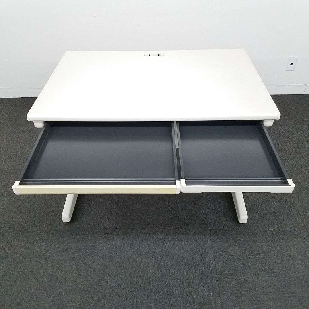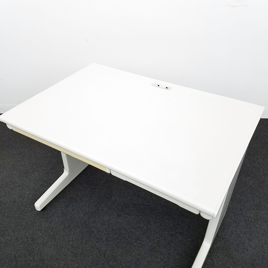 【定価約5万円】【今や希少品?!W1000mmのちょうどよいコンパクトサイズ!】■プラス(PLUS)製 LAシリーズ 平机 引き出し付 W1000㎜ ■ホワイト ■配線口 ※日焼けあり