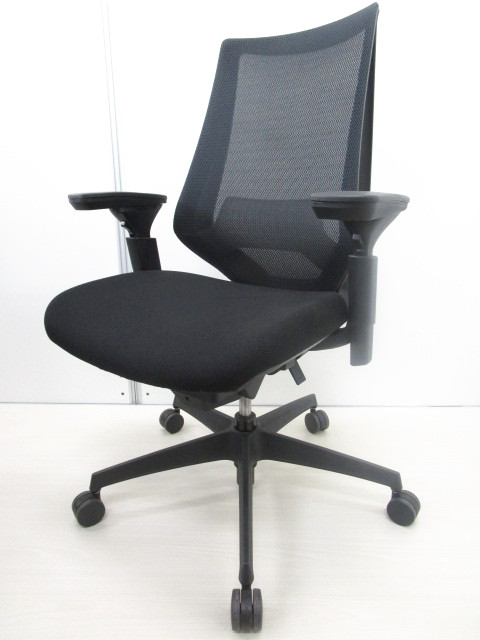 コクヨ製 デュオラシリーズ ブラックカラー クロスタイプ 固定肘 心地よい座り心地とスタイリッシュなデザインが人気 肘付きハイバックチェア!!