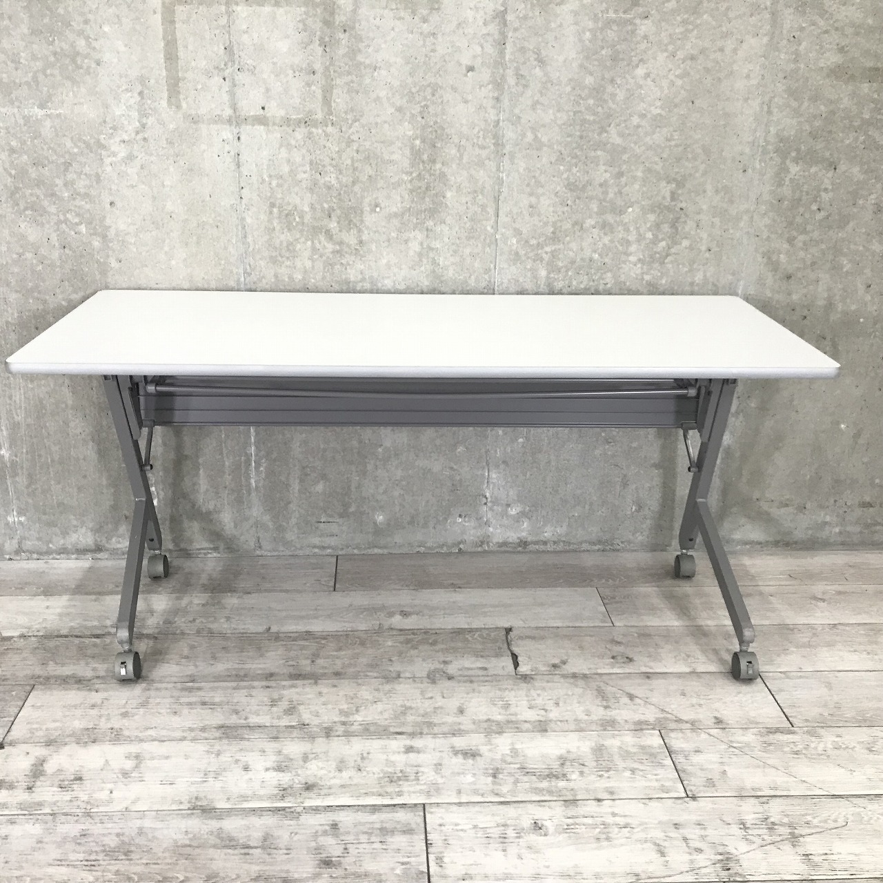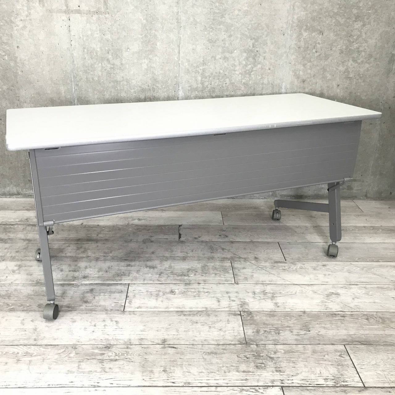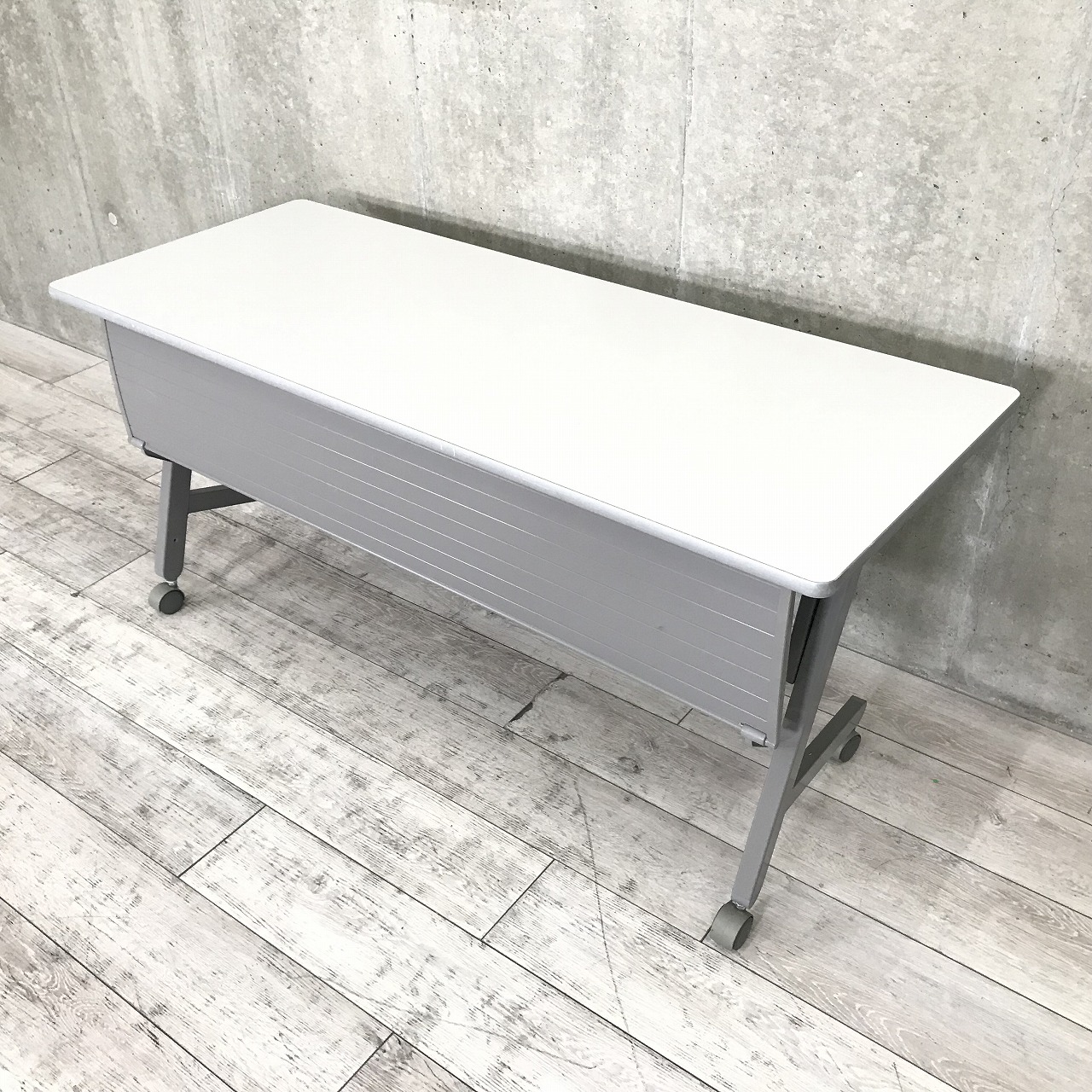 【W1500の2名に最適なサイドスタックテーブル!】イトーキ ホワイト スタックテーブル 折り畳みテーブル 幕板付き【キャスター付きの便利家具!】- 足立・葛飾店