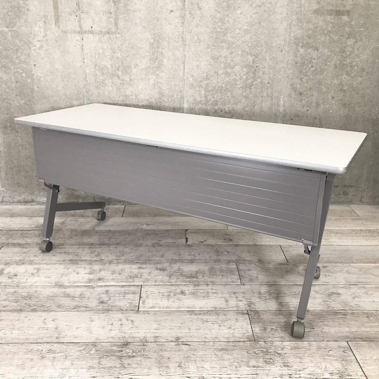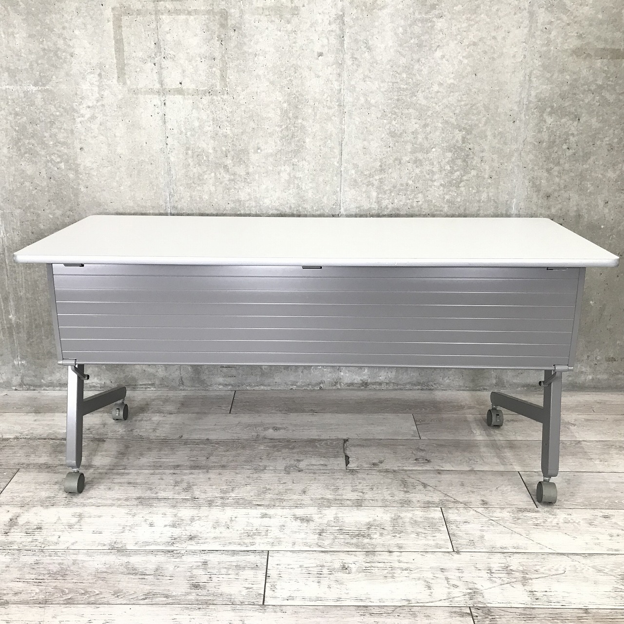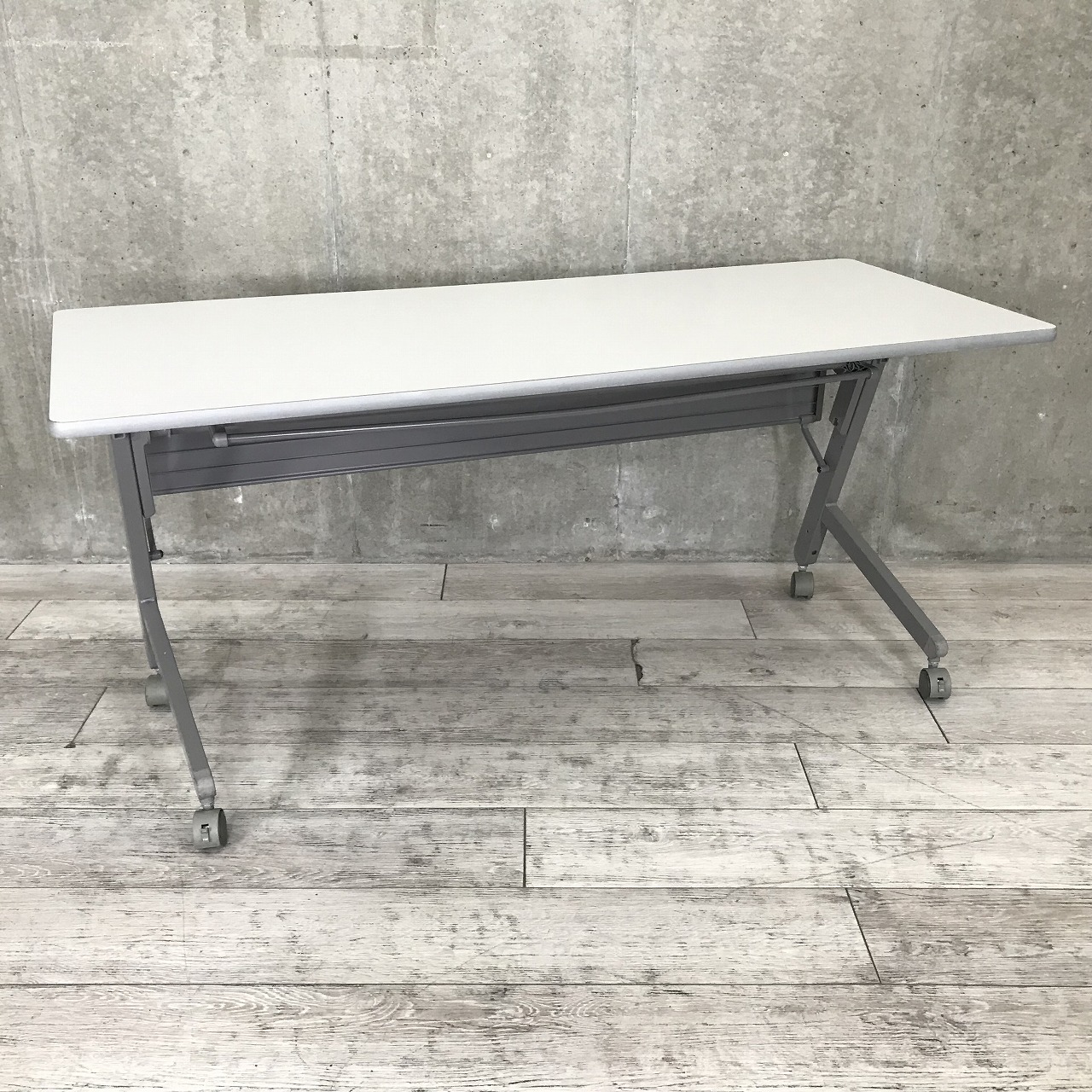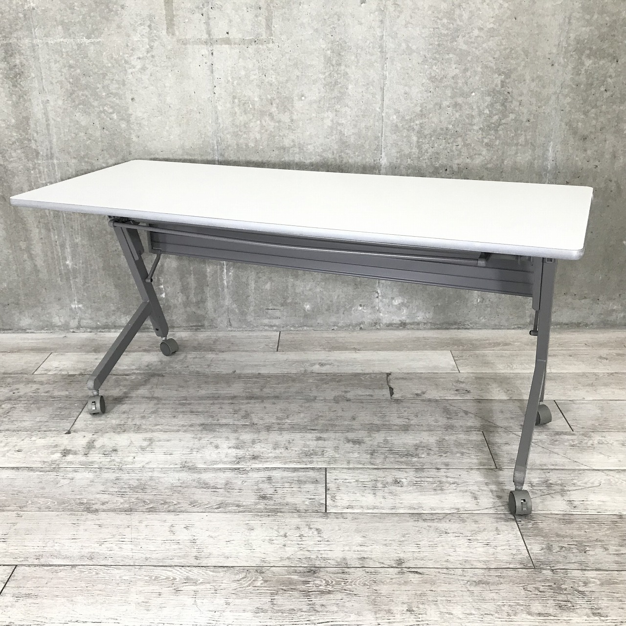 【W1500の2名に最適なサイドスタックテーブル!】イトーキ ホワイト スタックテーブル 折り畳みテーブル 幕板付き【キャスター付きの便利家具!】- 足立・葛飾店