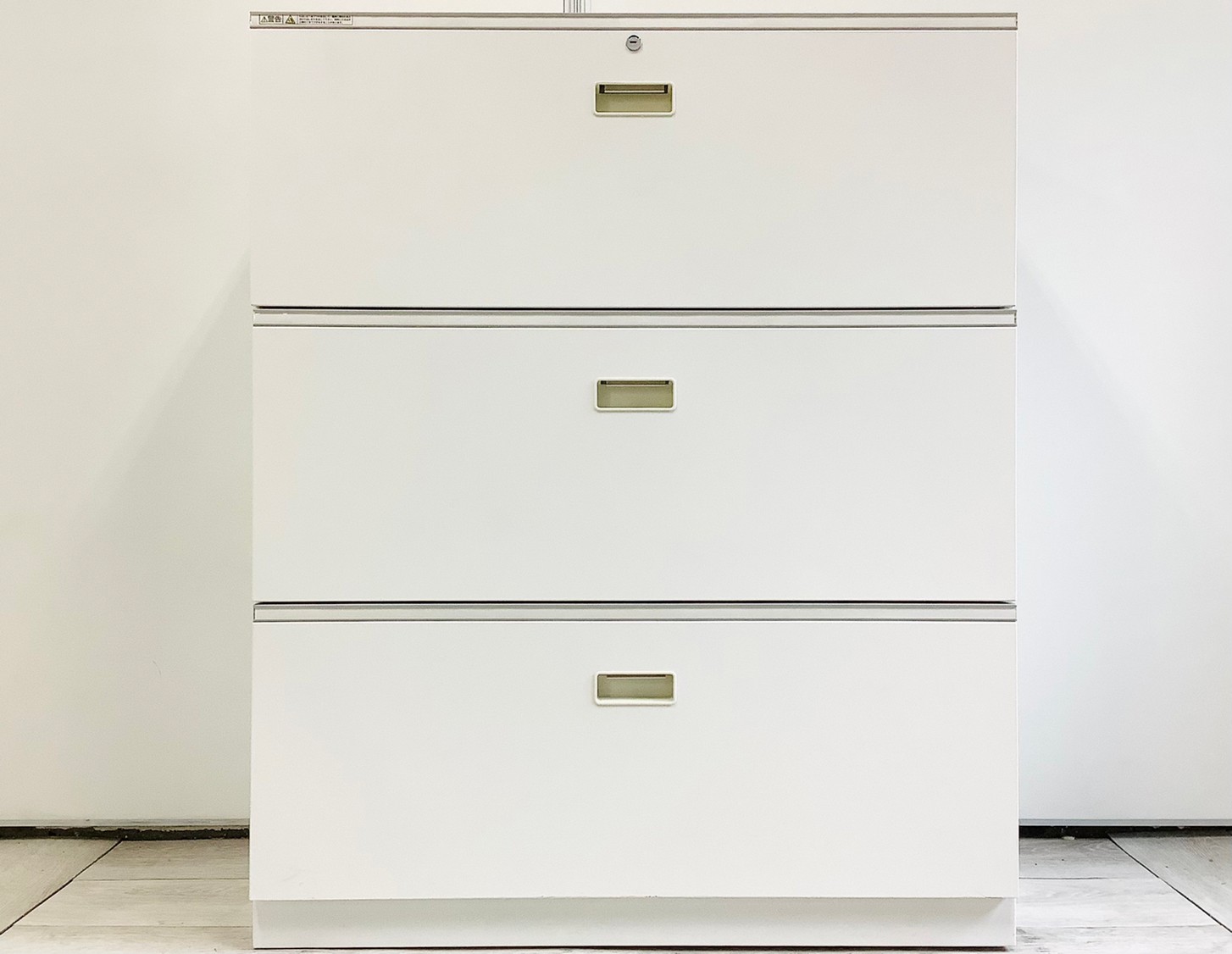 【A4ファイルも沢山収納可能!ホワイトカラーの人気シリーズ3段ラテラル書庫!】■イトーキ(ITOKI)製 シンラインシリーズ (THIN LINE) 3段ラテラル書庫 ローキャビネット ■シリンダー錠 ■ホワイト
