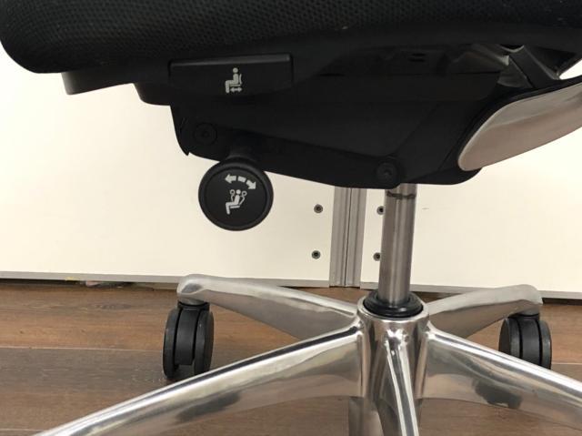 - 椅子と背が連動する「シンクロリクライニング」。リクライニング角度は直立ポジションから前方に10度、後方に23度です。