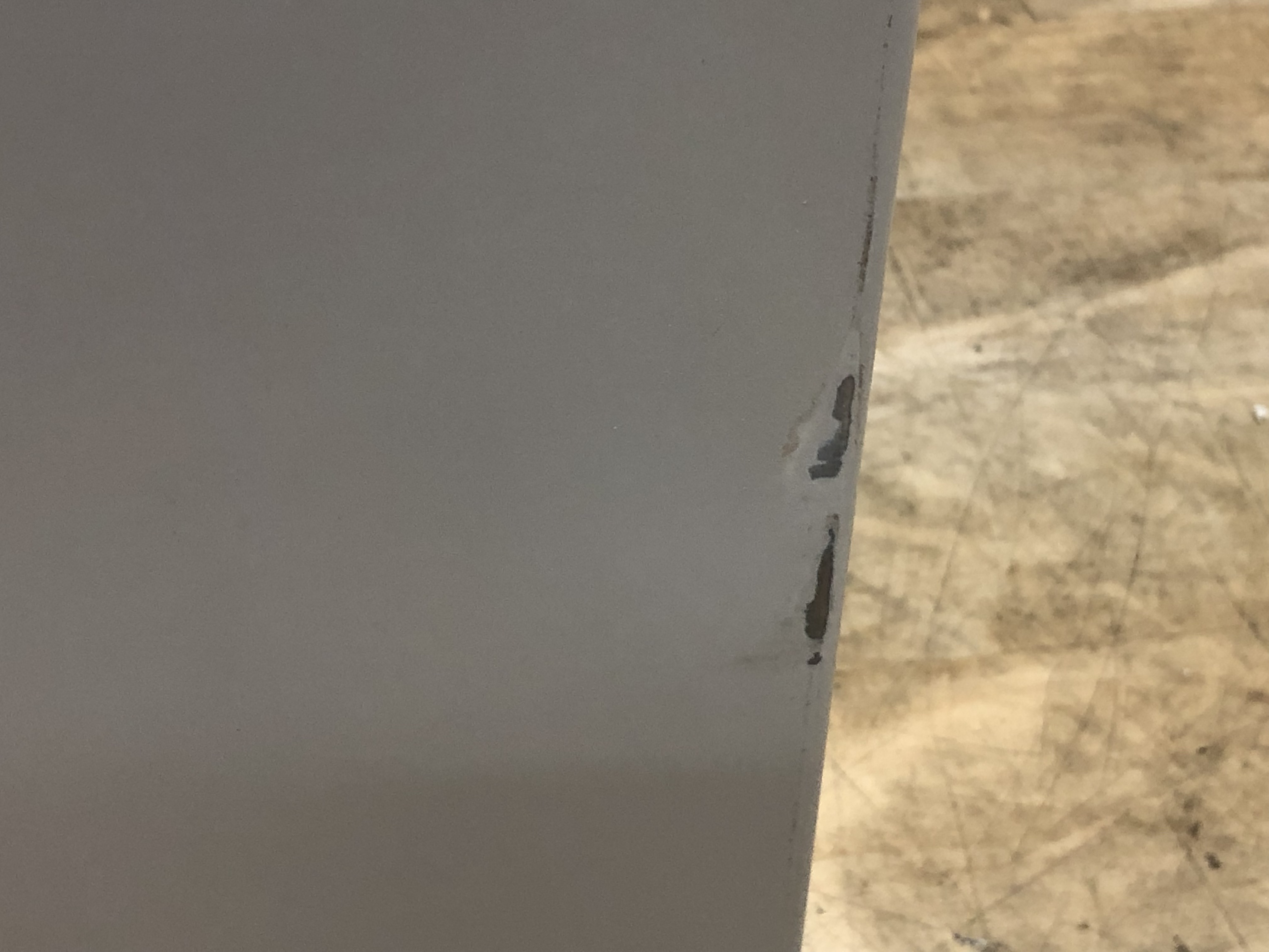 - 目立つ箇所複数あり深い傷・凹みが商品全体にある。(例、天板、正面、背後、サイド部分にある。)