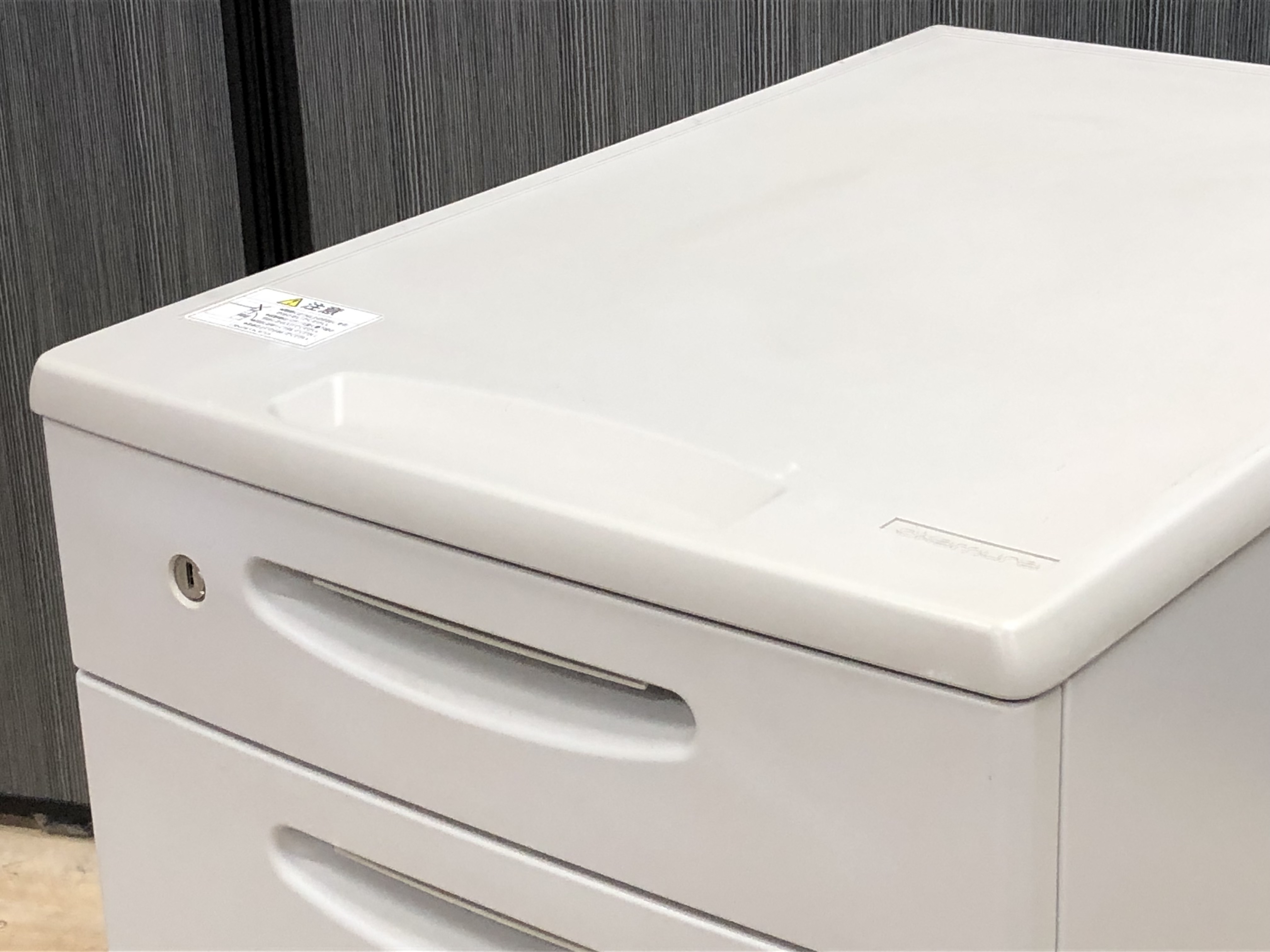 【定価約7万円】【天板の把手とキャスターで移動がらくらく!シンプルでスタンダードな3段ワゴン!】■オカムラ(okamura)製 SDシリーズ 3段ワゴン デスクインワゴン H610mm ■ニューグレー ■シリンダー錠