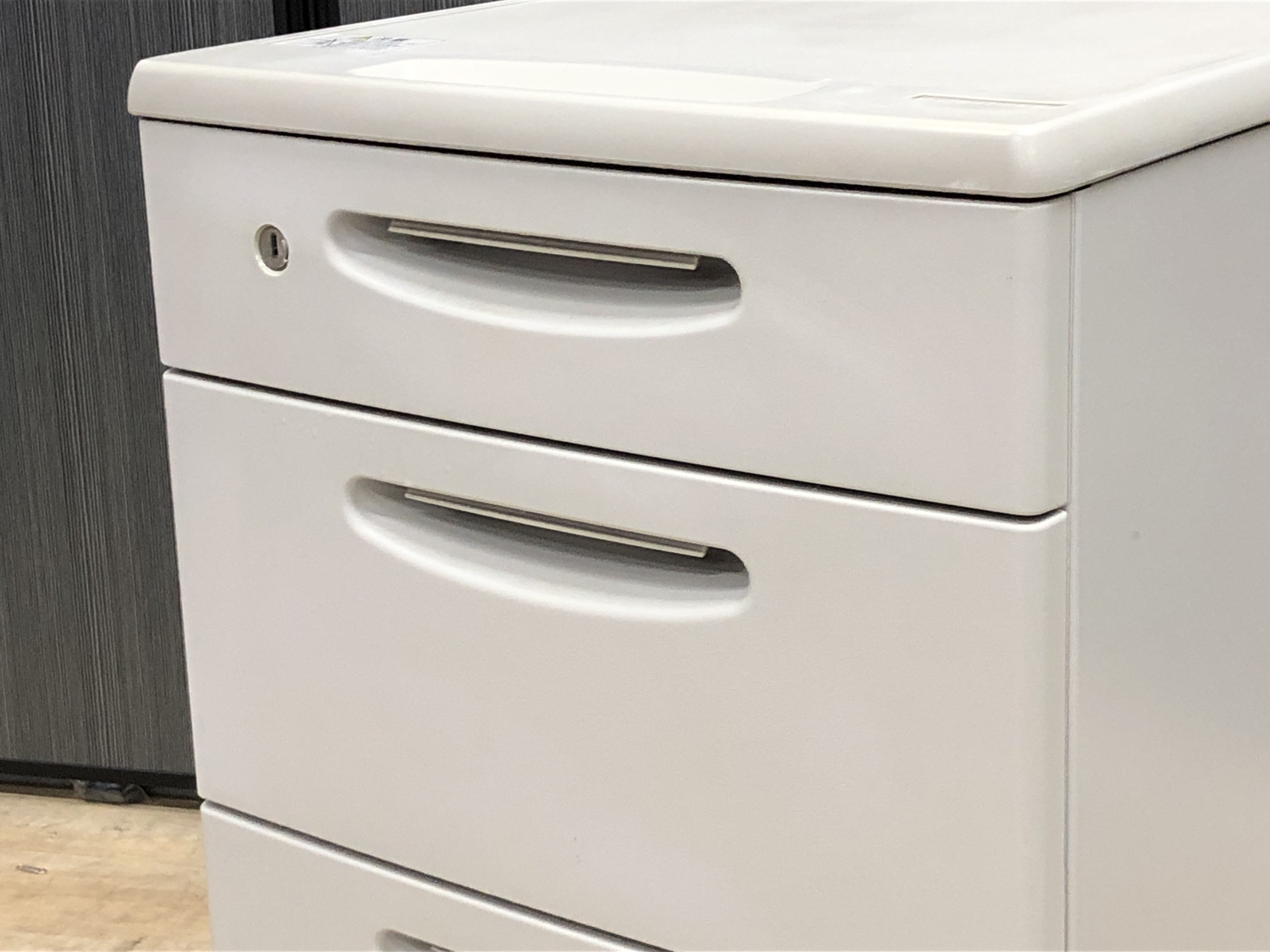 【大人気オカムラ製3段デスクワゴン!天板の把手とキャスターで移動がらくらく!デスク下に置いて収納力アップ!】■オカムラ(okamura)製 SDシリーズ 3段ワゴン デスクインワゴン H610㎜ ■ニューグレー ■シリンダー錠