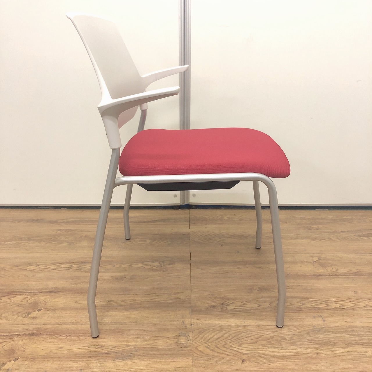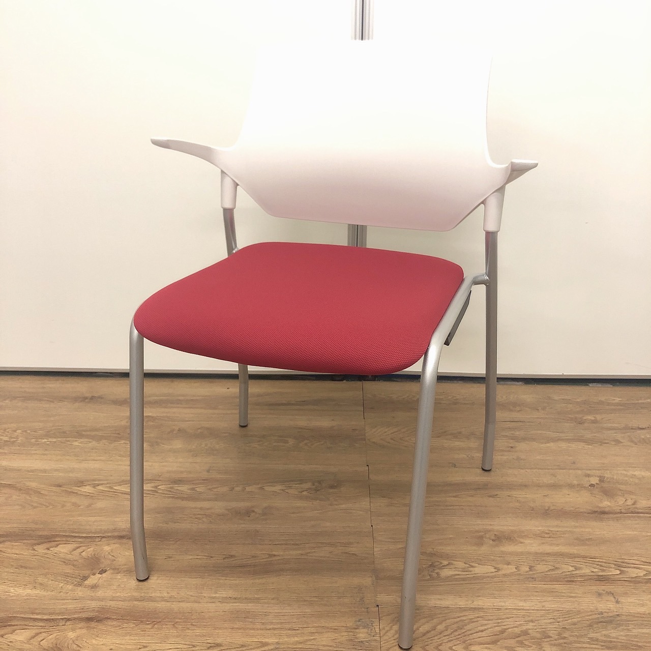 スタッキング ホワイトフレーム レッド 収納 研修 待合 会議 エントランス おしゃれ 2015年製 【2脚セット】- 大阪梅田本店
