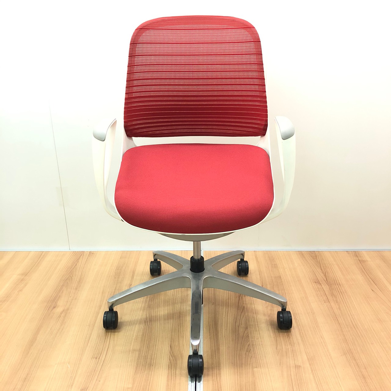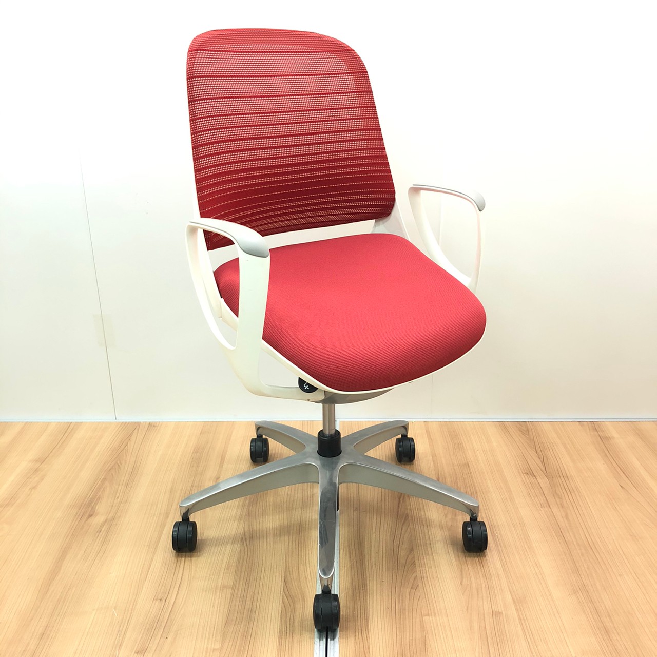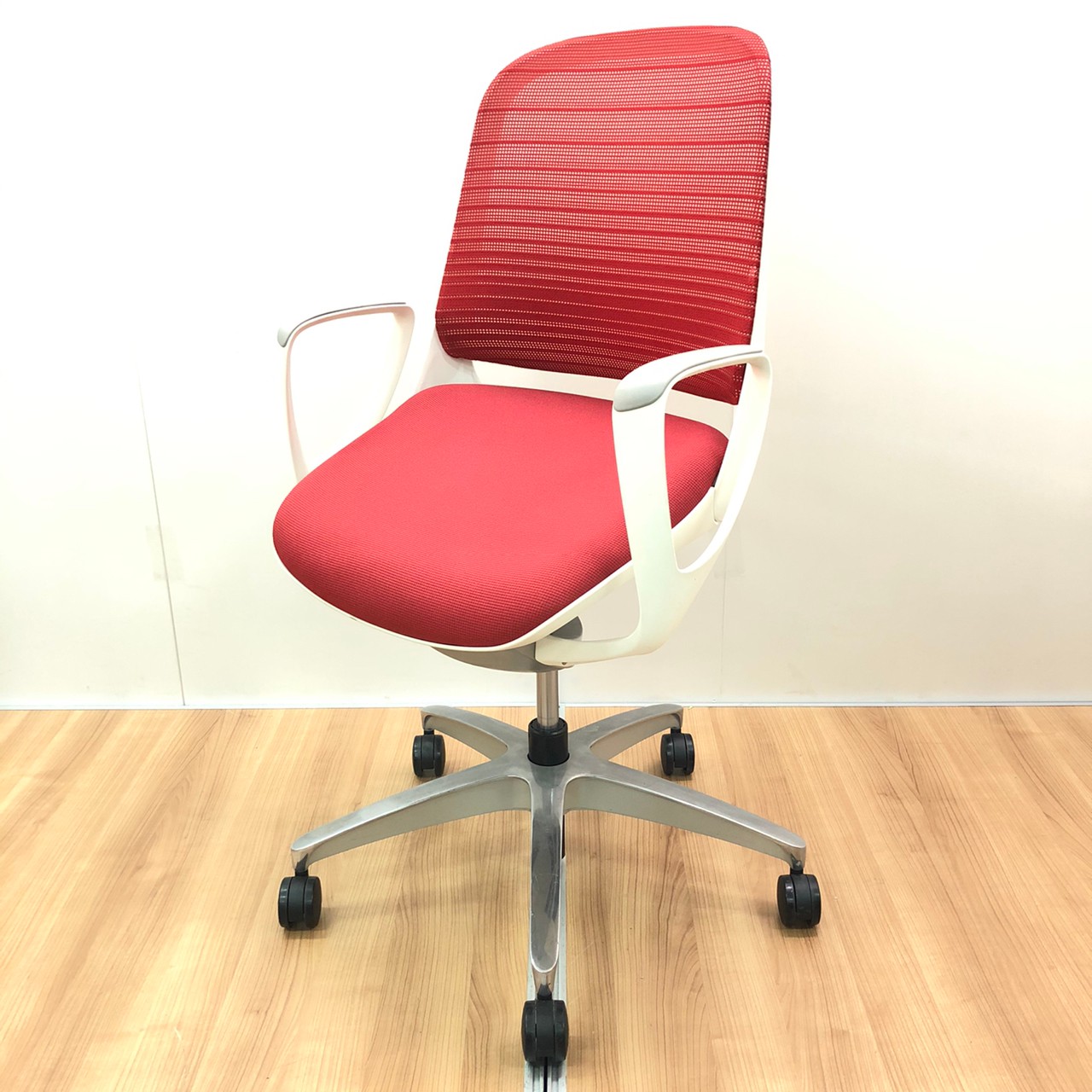 【C】【これまでにない座り心地を追及!】■オカムラ ルーチェチェア 肘付 レッド グラデーションサポートメッシュ 在庫入替特価!サーキュラーバリューCO2削減量の算出について