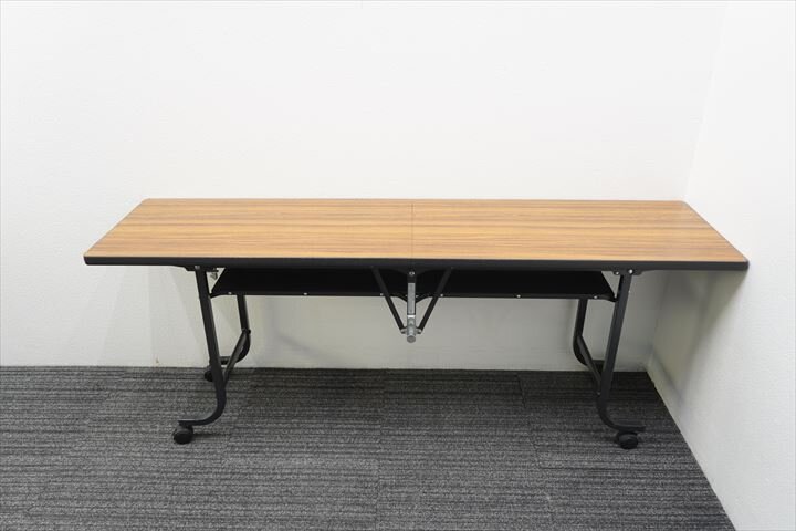【中部地方在庫】【ロット入荷】【T1】折り畳み式テーブル棚付き KT-110シリーズ チーク W1800×D450×H700【中古オフィス家具】新大阪店- 新大阪店
