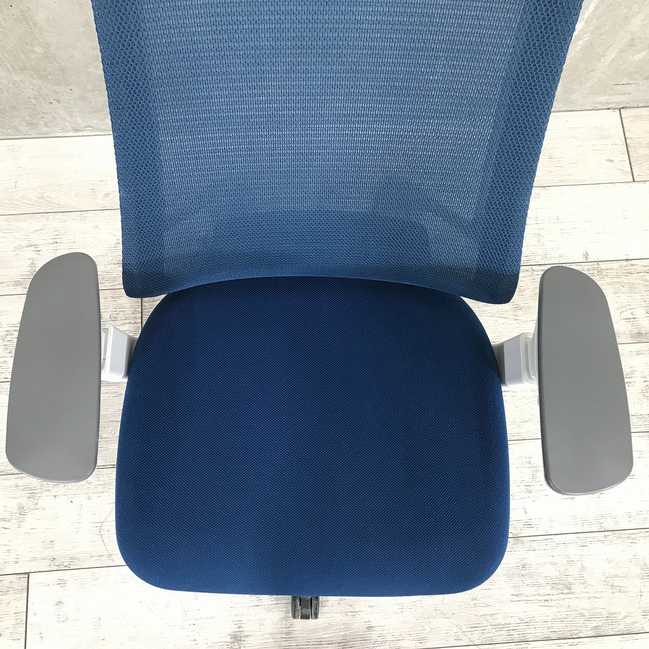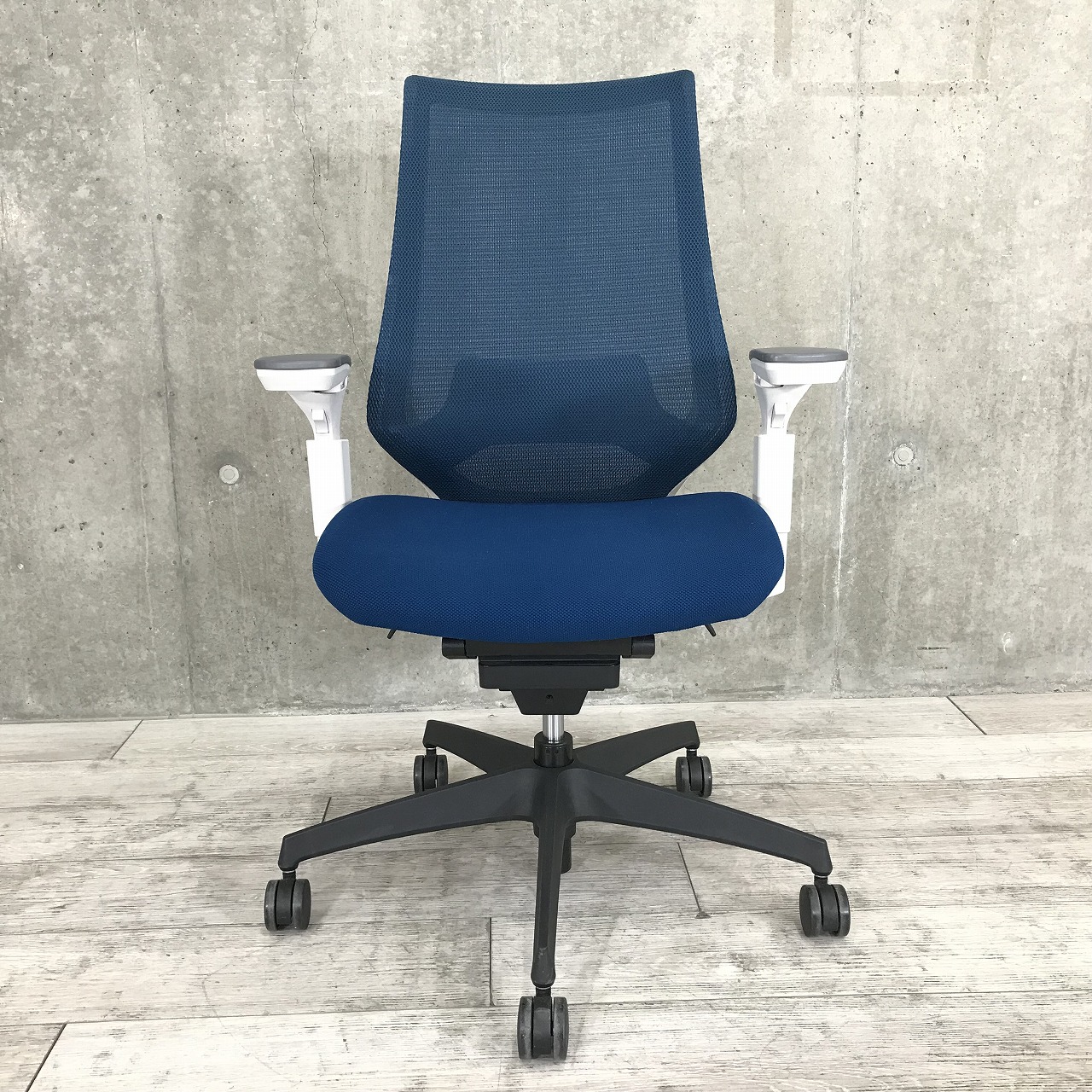 ■KOKUYO/コクヨ ■デュオラ(Duora)チェア ■プルシアンブルー×ホワイトシェル×ブラック脚 ■肘付き/可動肘 ■ハイバック ■背面/メッシュ 座面/布 ■コートハンガー付き ■オススメ/人気/定番商品 【弊社使用欄:A01040309 K】【ID】